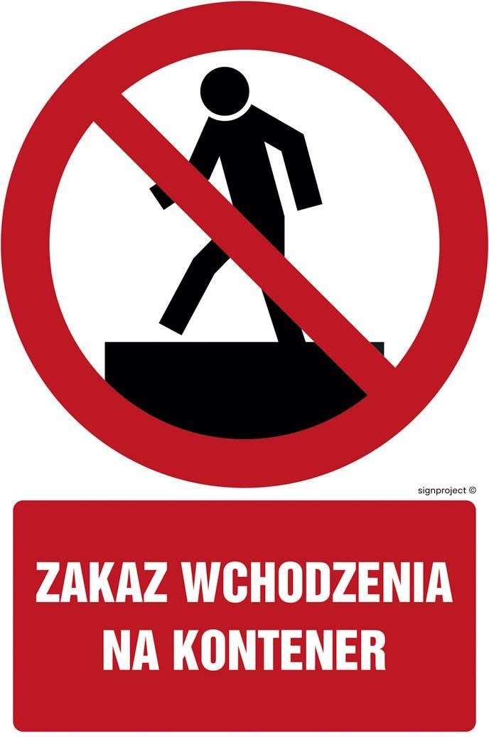 Gc062 Zakaz Wchodzenia Na Kontener, Pn - Płyta Pcv 1Mm (350X525Mm) Brzeg Dolny