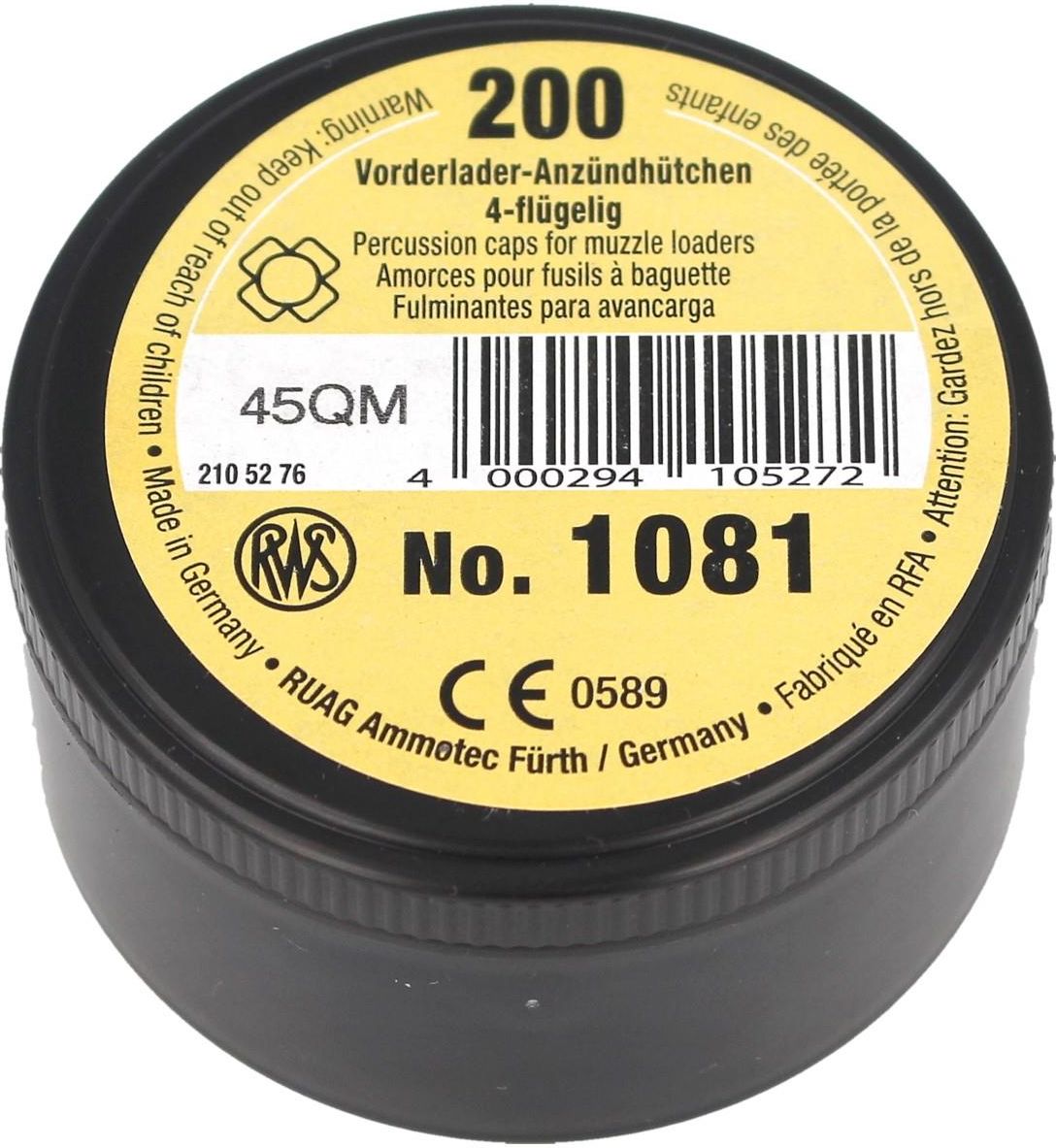 Czteroskrzydełkowe kapiszony do kominków niemieckiej marki RWS No. 1081 (6 mm) z powodzeniem zastępują droższe 6-cio skrzydełkowe. Przeznaczone do karabinów (m.in. Sharps), muszkietów oraz pistoletów wojskowych. Opakowanie zawiera 200 szt...