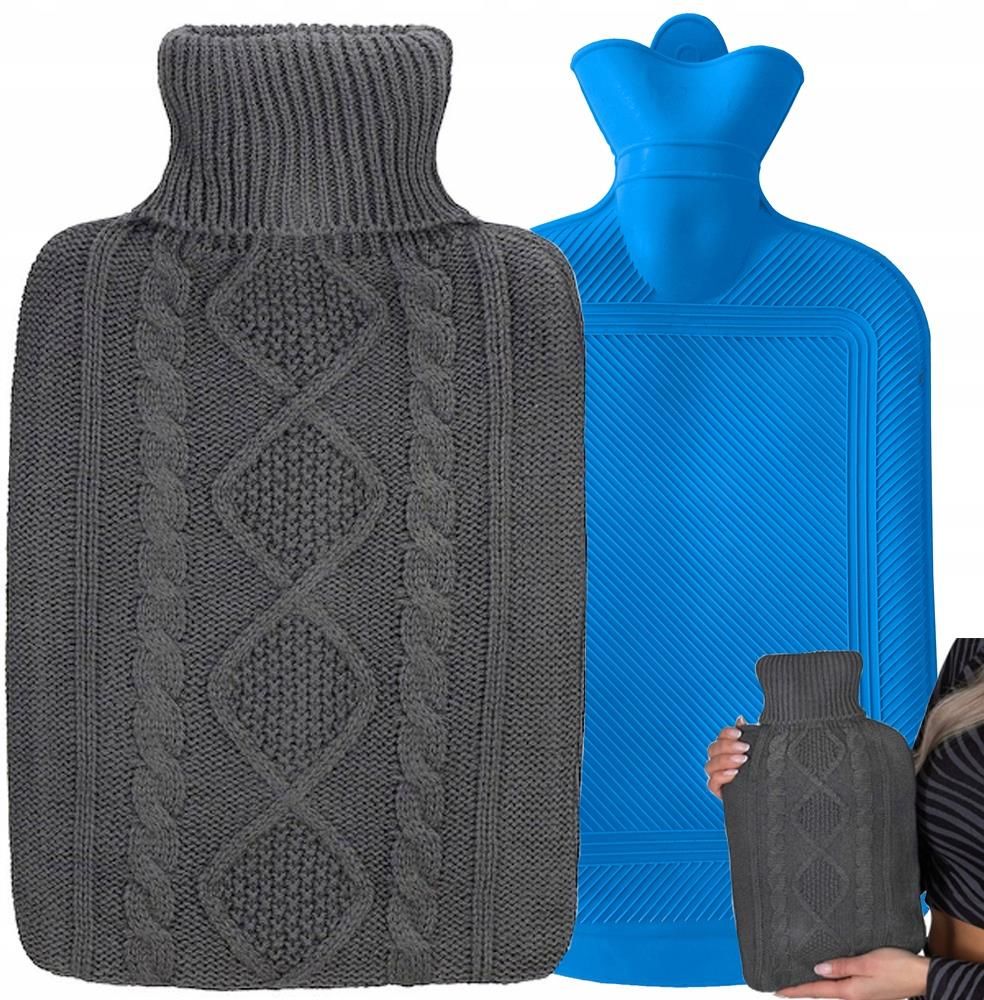 Termofor Gumowy Sweterek Duży 2L Na Wodę Pokrowiec Sweter Ogrzewacz Wzór Brzeg Dolny