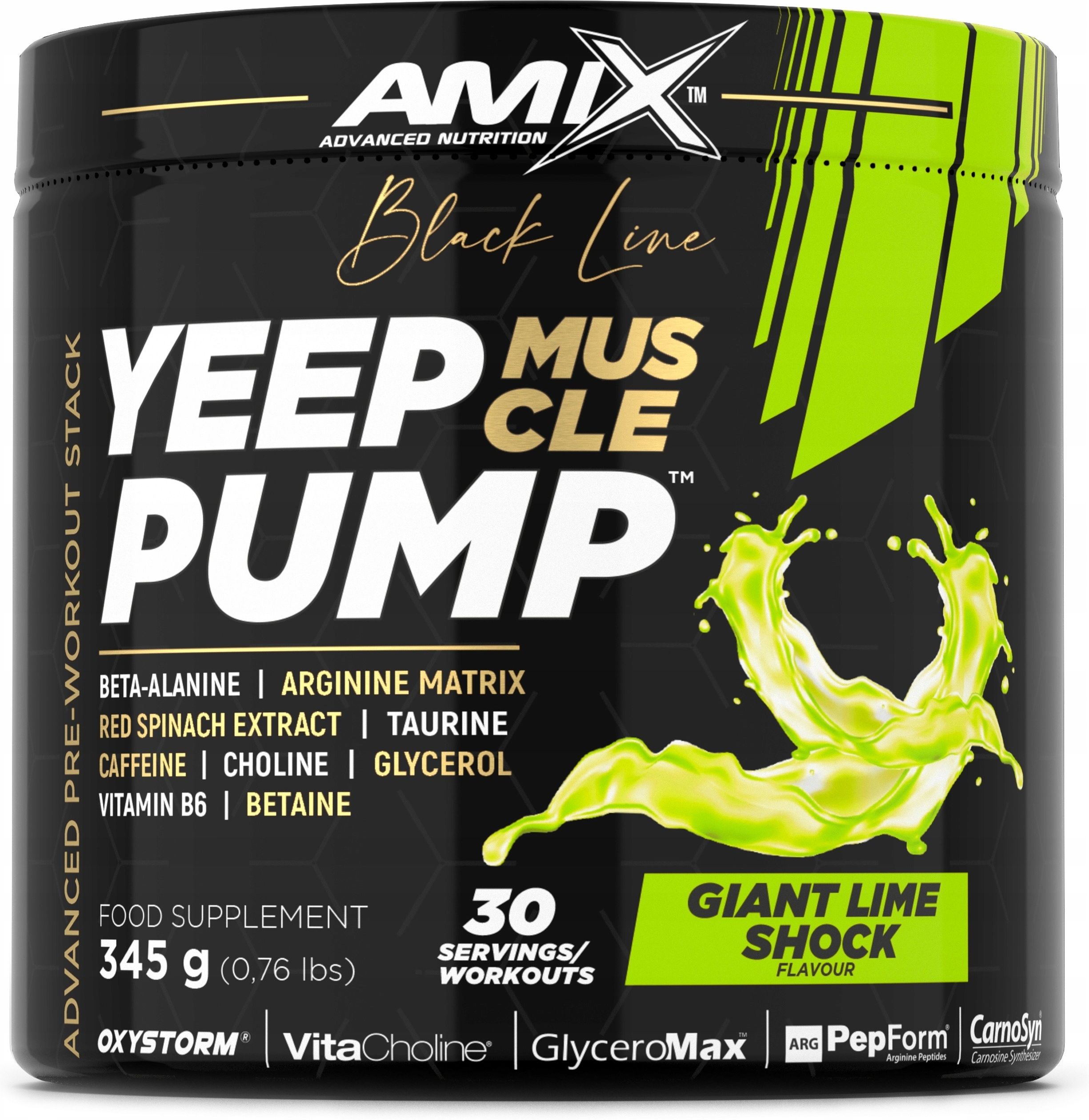 - najlepiej oceniany produktu w swojej kategorii Przekonaj się, dlaczego inni nas wybierają – dołącz do grona zadowolonych klientów! Mocna Przedtreningówka - Amix Yeep Pump Muscle 345 g – Poczuj moc, która napompuje Twoje mięśnie! ⚡Wersja z kofeiną! Maksymalna pompa mięśniowa: Potężna dawka argininy (HCl, AKG i PepForm®) poprawia przepływ krwi, zapewniając efekt pełnych, napompowanych mięśni podczas każdego treningu. Dłuższe i intensywniejsze treningi: Beta-alanina CarnoSyn® opóźnia zmęczenie, pozwalając Ci trenować na pełnych obrotach przez dłuższy czas. Energia i laserowa koncentracja: Kofeina i VitaCholine® gwarantują zastrzyk motywacji i skupienia, byś był maksymalnie skoncentrowany na swoim celu. Ochrona i regeneracja: L-tauryna, L-lizyna oraz naturalne azotany z czerwonego szpinaku wspierają mięśnie, minimalizując skutki intensywnego wysiłku. Wsparcie nawodnienia: GlyceroMax™ poprawia nawodnienie mięśni, wspierając ich wydajność i ochronę przed odwodnieniem. Odkryj nowy wymiar swoich treningów! Dodaj Yeep Pump Muscle do koszyka i przekonaj się, co znaczy trenować na najwyższych obrotach! Oferta promocyjna⌛ tylko 119 zł Tniemy cenę z kwoty 149 zł. Ekstremalna Pompa, Wytrzymałość i Energia na każdym treningu PreWorkout, Odżywka przed treningiem ➡️ Amix Yeep Pump Muscle wersja z kofeiną Poczuj eksplozję mocy, która przeniesie Twoje treningi na wyższy poziom! YEEP Pump Muscle w wersji z kofeiną to więcej niż zwykła przedtreningówka – to Twoja tajna broń, która pomoże Ci zdominować każdy trening. Jeśli marzysz o pełniejszych mięśniach, dużej dawce energii i motywacji, która pcha Cię naprzód, właśnie znalazłeś rozwiązanie. Twoja historia sukcesu zaczyna się od pierwszej miarki. Dzięki unikalnej formule zawierającej: Beta-alaninę CarnoSyn®, GlyceroMax®, Suntheanine® i OxyStorm®, Amix YEEP Pump Muscle zapewnia nie tylko maksymalną pompę mięśniową, ale również długotrwałą wytrzymałość, pobudzenie i koncentrację, której potrzebujesz, by dać z siebie wszystko. Produkt zawiera również takie składniki jak L-tauryna, L-lizyna, GABA i betaina, które podnoszą efektywność na zupełnie nowy poziom. To składniki, których próżno szukać u konkurencji! Wybierz swój ulubiony smak: orzeźwiający Giant Lime Shock, pełen energii i świeżości? czy intensywny Orange Attack, który pobudzi Twój trening, czy Co sprawia, że YEEP Pump Muscle Muscle z kofeiną - jest tak wyjątkowy? Maksymalna pompa mięśniowa: Połączenie argininy (HCl, AKG i peptydy PepForm®) wspiera rozszerzenie naczyń krwionośnych, zapewniając lepszy przepływ krwi i spektakularne wypełnienie mięśni. Dłuższa wytrzymałość: Dzięki beta-alaninie zmniejszysz uczucie zmęczenia, pozwalając sobie na wykonanie serii, które przekroczą Twoje dotychczasowe granice. Pełna koncentracja i energia: Dzięki 200 mg bezwodnej kofeiny oraz VitaCholine® poczujesz zastrzyk mocy i mentalny focus, który utrzyma Cię na szczycie cały trening. Regeneracja i równowaga: L-tauryna, L-lizyna i betaina wspierają regenerację oraz chronią mięśnie przed katabolizmem. YEEP Pump Muscle z kofeiną będzie idealnym wyborem dla Sportowców wytrzymałościowych: Świetny dla biegaczy, rowerzystów i osób trenujących sporty wytrzymałościowe. Pasjonatów siłowni i sportów sylwetkowych: Dla tych, którzy chcą maksymalnej pompy mięśniowej i lepszej sylwetki. Intensywnie trenujących: Beta-alanina i kofeina wspierają wydłużenie sesji treningowych i osiąganie celów. Miłośników ciężkich treningów siłowych: Pomaga w regeneracji i poprawia koncentrację. Osób szukających energii: Doskonałe wsparcie w trudnych dniach. NAJCZĘŚCIEJ ZADAWANE PYTANIA (FAQ) Jak optymalnie dawkować suplement? Zalecana dawka to 1 miarka (11,5 g) rozpuszczona w 200-300 ml wody. Najlepiej spożywać na około 20-30 minut przed treningiem. Unikaj spożycia na czczo, jeśli masz wrażliwy żołądek, oraz nie przyjmuj go wieczorem, by uniknąć problemów z zasypianiem. Czy mogę łączyć Yeep Pump Muscle z innymi suplementami? Tak, Yeep Pump Muscle można łączyć z innymi suplementami, takimi jak BCAA, kreatyna czy białko serwatkowe. Jednak ze względu na zawartość kofeiny, nie należy łączyć go z innymi produktami stymulującymi. Jak szybko poczuję efekty po zażyciu Yeep Pump Muscle? Pierwsze efekty, takie jak zwiększenie energii i koncentracji, odczujesz już po około 20 minutach. Pełna pompa mięśniowa oraz wydłużona wytrzymałość będą widoczne podczas treningu. Czy Amix Yeep Pump nadaje się dla początkujących? Tak, Amix Yeep Pump jest odpowiedni zarówno dla początkujących, jak i zaawansowanych sportowców. Wspiera wydajność treningową na każdym poziomie zaawansowania. Działanie najważniejszych składników w Yeep Pump Muscle: Klucz do wytrzymałości i maksymalnej intensywności – Beta-alanina CarnoSyn Amix Yeep Pump Muscle zawiera najwyższej jakości, certyfikowaną Beta-alaninę CarnoSyn® – składnik o udowodnionej naukowo skuteczności. Dzięki tej opatentowanej formie Twój organizm może dłużej opierać się zmęczeniu, ponieważ wspiera wzrost poziomu karnozyny w mięśniach. To właśnie karnozyna jest kluczowym elementem, który umożliwia bardziej intensywne i wydajne treningi, eliminując problem nagromadzenia kwasu mlekowego. CarnoSyn® nie tylko zwiększa Twoją wytrzymałość, ale także wspiera szybszą regenerację i pozwala osiągać lepsze wyniki treningowe. Maksymalna pompa mięśniowa dzięki – Arginine Matrix, Arg PepForm i GlyceroMax Amix YEEP Pump to prawdziwa rewolucja w świecie suplementów przedtreningowych, zapewniająca maksymalny efekt pompy mięśniowej dzięki zaawansowanej formule Arginine Matrix. Połączenie trzech form argininy – L-Arginine HCl, AAKG i PepForm® Arginine Peptides – gwarantuje niezrównany przepływ krwi i dotlenienie m