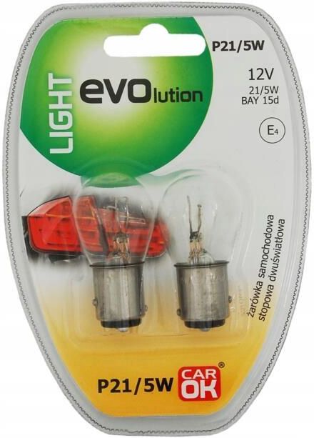 P21/5W 12V 21/5W BAY15d bl2 nOK (10) Żarówka samochodowa światła stopu P21/5W 12VŻarówka samochodowa światła stopu to element niezbędny do prawidłowego funkcjonowania całego oświetlenia samochodu. W skład opakowania wchodzą dwie żarówki. Żarówki światła stopu do samochodu warto zawsze mieć pod ręką na wypadek ewentualnej awarii. Trzeba bowiem wiedzieć, że niedziałające światło stopu jest niebezpieczne i nie wolno go w żadnym wypadku bagatelizować. Żarówki marki Car OK wykorzystywane są zarówno w przypadku samochodów osobowych, jak i aut ciężarowych. Wyróżniają się one długą żywotnością. Stanowią produkt odpowiedni do użycia w pojazdach z instalacją elektryczną 12V. Parametry:Marka: Car OKZastosowanie: Żarówki stopuKolor dominujący: PrzezroczystyMoc: 21/5 WZestaw zawiera: 2 szt. żarówekKod EAN: 5907780034407 5907780034407 007374