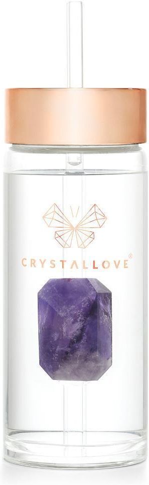 CRYSTALLOVE SZKLANA BUTELKA NA WODĘ Z AMETYSTEM I SŁOMKĄ 400mlOdkryj wyjątkową harmonię ciała, umysłu i stylu dzięki naszej szklanej butelce na wodę z ametystem. Butelka jest nie tylko funkcjonalna ale także łączy elegancję z właściwościami naturalnego ametystu. To coś więcej niż butelka – to Twój codzienny rytuał zdrowia i dobrego samopoczucia!Butelka wykonana jest z najwyższej jakości materiałów takich jak szkło borokrzemowe oraz stal nierdzewna klasy spożywczej. Szkło borokrzemowe uważane jest za najzdrowszy, wolny od toksyn materiał. Do zestawu dołączona jest szklana słomka oraz naturalny ametyst, który możesz nałożyć na słomkę. Dzięki temu możliwy będzie bezpośredni kontakt kryształu z wodą podczas picia. To idealny wybór dla osób, które cenią zdrowy styl życia i pragną dodać swojej codziennej rutynie odrobinę naturalnej energii.AMETYST wg MEDYCYNY NIEKONWENCJONALNEJ wpływa korzystnie na skórę wspomaga detoksykację i oczyszczanie wzmacnia samoocenę pomaga w kontaktach duchowych i medytacji poprzez wyciszenie i koncentracjęZALETY BUTELKI: Naturalna energia ametystu: ametyst znany ze swoich właściwości oczyszczających i poprawiających samopoczucie Wysoka jakość materiałów: butelka wykonana jest z trwałego szkła borokrzemowego, które jest odporne na zmiany temperatury i pęknięcia Ekologiczne rozwiązanie: zamiast używać jednorazowych plastikowych butelek, wybierając naszą butelkę, dbasz o środowisko i redukujesz ilość odpadów Elegancki design: nowoczesny i stylowy wygląd butelki sprawia, że jest ona nie tylko praktycznym, ale także modnym dodatkiem Funkcjonalna słomka: do butelki dołączona jest szklana słomka do picia, na którą można nałożyć kryształ. Dzięki temu woda jest wzbogacana energią kryształu w momencie picia Łatwość utrzymania czystości: wyjmowany kryształ oraz szeroki otwór butelki ułatwiają mycie i utrzymanie jej w czystościButelka jest wielokrotnego użytku dzięki czemu ograniczysz zużycie butelek plastikowych i przyczynisz się do ochrony środowiska. Dodatkowo, etui dołączone do butelki, chroni ją przed uszkodzeniami a eleganckie opakowanie sprawia, że butelka doskonale nadaje się na prezent. W zestawie znajduje się także instrukcja użytkowania, aby korzystanie z butelki było jeszcze bardziej intuicyjne. Butelka jest wygodna i poręczna. Posiada przepiękny i modny design!Pojemność butelki to 400mlStwórz swój codzienny rytuał dzięki naszej szklanej butelce na wodę z ametystem!