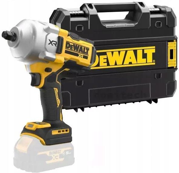 Wybierając produkt z tej oferty, masz pewność, że kupujesz oryginalny produkt DeWALT®! Klucz udarowy 18V 1626Nm 1/2" body TSTAK DeWalt DCF961NT Zawartość zestawu DeWALT: Klucz udarowy 18V 1626Nm 1/2" body TSTAK DeWalt DCF961 Kufer transportowy TSTAK Karta gwarancyjna Wersja NT BODY- bez akumulatorów i ładowarki w zestawie, opakowanie walizka TSTAK. Produkt został wyprodukowany przez amerykańską markę DeWALT® Bezszczotkowy akumulatorowy klucz udarowy DCF961 to narzędzie z najnowszej generacji serii XR Li-Ion 18V, które doskonale sprawdzi się w różnego rodzaju pracach montażowych, gdzie potrzebna jest duża siła oraz wysoka wytrzymałość. Dzięki solidnej konstrukcji i wysokiemu momentowiobrotowemu wynoszącemu aż 1626 Nm. Jest on idealnym narzędziem do wykonywania wymagających zadań. Wyposażony w nowoczesny silnik bezszczotkowy, który nie tylko zapewnia dużą wydajność, ale także zapewnia bezawaryjność narzędzia. Silnik jest dodatkowo chłodzony wentylatorem, co zapobiega przegrzewaniu i umożliwia wydajną pracę w ciężkich warunkach. Klucz DCF961 ma imponujący moment zrywający wynoszący 2373 Nm, co pozwala na łatwe usunięcie nawet najbardziej opornych śrub. Klucz jest wyposażony w uchwyt o rozmiarze 1/2", co zapewnia efektywne przenoszenie momentu obrotowego na narzędzia. Posiada 3 stopnie regulacji prędkości i momentu obrotowego, co pozwala na dostosowanie narzędzia do konkretnej pracy. Natomiast jasne oświetlenie LED z opcją opóźnienia wyłączania ułatwia pracę w słabo oświetlonych miejscach. Rękojeść narzędzia jest pokryta gumą, zapewniając stabilny i komfortowy chwyt oraz maksymalną kontrolę podczas pracy. Dane techniczne: Typ zasilania: akumulatorowe Typ akumulatorów: Li-Ion Ilość akumulatorów: 0 - body Typ silnika: bezszczotkowy Moment obrotowy: 1626 Nm Moment zrywania: 2373 Nm Końcówka wrzeciona: kwadrat 1/2" Ilość biegów: 3 Prędkość obrotowa I bieg: 440 obr./min Prędkość obrotowa II bieg: 800 obr./min Prędkość obrotowa III bieg: 1200 obr./min Ilość udarów I bieg: 135 ud./min Ilość udarów II bieg: 1220 ud./min Ilość udarów III bieg: 1626 ud./min Oświetlenie: tak - LED Długość: 213 mm Kod producenta: DCF961NT Opakowanie: walizka transportowa TSTAK Producent: DeWALT Dodatkowe informacje: Dzięki wysokiemu momentowi obrotowemu (1626Nm) i solidnej, wytrzymałej konstrukcji polecany jest do szerokiej palety prac montażowych wymagających narzędzi o dużej sile i wytrzymałości Należy do nowej generacji kluczy udarowych XR Li-Ion 18 V z silnikiem bezszczotkowym Chłodzony wentylatorem, wytrzymały silnik z momentem obrotowym do 1632 Nm zapewnia do 1200 udarów na minutę umożliwiając zastosowanie urządzenia do ciężkich prac Maksymalny moment zrywający 2373 Nm umożliwia usunięcie nawet najbardziej opornych śrub Klucz wyposażony jest w mocowanie nasadki na 1/2" co zapewnia bardzo efektywne przenoszenie momentu obrotowego Ma 3 stopnie regulacji prędkości i momentu obrotowego i 1 tryb pracy, pozwala to na precyzyjny dobór parametrów do rodzaju wykonywanej pracy Posiada jasne oświetlenie LED z funkcją opóźnienia wyłączenia i funkcjonalność latarki Ergonomiczna ogumowana rękojeść zapewnia zwiększenie stabilności i komfortu pracy oraz maksymalnej kontroli