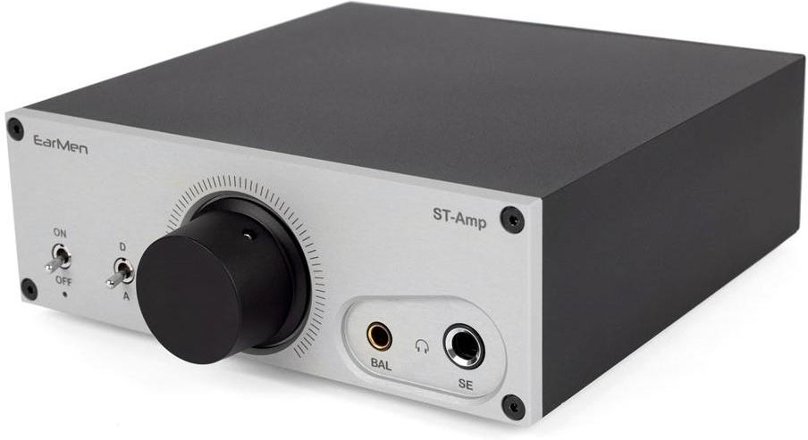 EarMen ST-AmpStacjonarny w pełni zbalansowany DAC / wzmacniacz słuchawkowy / przedwzmacniacz• Łatwy w użyciu• Zintegrowany przetwornik cyfrowo-analogowy• Moc wyjściowa do 1.85W• W pełni zbalansowana architektura• Ultra niskie THD i SNR• Aluminiowa obudowa• Kompaktowa konstrukcja• Opcja Pre OutEarMen ST-Amp to w pełni zbalansowany stacjonarny wzmacniacz słuchawkowy z opcją Pre Amp i zintegrowanym przetwornikiem cyfrowo-analogowym. Cechuje się wyjątkowym brzmieniem, niezależnie od tego, czy jest słuchany z zewnętrznego, czy ze zintegrowanego przetwornika cyfrowo-analogowego, co jest świetnym rozwiązaniem dla wszystkich, którzy chcą mieć wszystko w jednym urządzeniu. Wzmacniacz został starannie wykonany specjalnie z myślą o użyciu słuchawek, dzięki wyeliminowano nieprzyjemne zjawisko Pop and Click podczas jego włączania lub wyłączania. W pełni zbalansowanyZastosowany wzmacniacz jest w pełni zbalansowany, więc każdy Twój dźwięk z dowolnego źródła wejściowego stanie się jeszcze czystszy i lepszy, ale to nie wszystko. Używamy dokładnie tej samej topologii dla sygnałów SE, więc stają się one zbalansowane w specjalny sposób, prawie bez przesunięcia fazowego, dodatkowego szumu lub THD, co jest świetną wiadomością, ponieważ dźwięk z wyjścia SE nie pozostaje w tyle za dźwiękiem z wyjścia zbalansowanego. Wyjście słuchawkowe zasilane jest przez dwa wzmacniacze operacyjne TPA6120, które sprawdziły się w świecie audiofilskim. Aby zapewnić pełne wrażenia, używamy wysokiej jakości zbalansowanego potencjometru ALPS, który przyczynia się do tego, że dźwięk pozostaje niezmieniony, a użytkownik jest zadowolony z użytkowania. BrzmienieST-AMP wpływa na dźwięk, dzięki czemu Twój DAC jest lepiej słyszalny. Chociaż wiele przetworników DAC ma doskonałe specyfikacje, nie wystarczy, aby dźwięk został wyrażony w pełni. ST-AMP wykorzystuje w pełni maksymalną dynamikę zapewnianą przez źródło dźwięku, dzięki czemu nie zostaniesz pozbawiony żadnych szczegółów. Ponadto bardzo łatwo kontroluje przetworniki różnych słuchawek, poprawiając w ten sposób dokładność, neutralność i przejrzystość. Niesamowita dynamikaZakres dynamiki powyżej >126dB zagwarantuje Ci żywotność i muzykalność, która pozwoli Ci uzyskać poczucie, że niczego nie brakuje. Dzięki idealnie zrównoważonemu dźwiękowi i niesamowitej dynamice poczujesz się jak w sali koncertowej. Opcja Pre OutNa tylnym panelu urządzenia mamy wyjścia SE i BAL Pre-Out. Ta opcja pozwala użytkownikowi używać ST-Amp jako przetwornika cyfrowo-analogowego i przedwzmacniacza dla znacznie mocniejszego systemu audio. Źródła do wyboruŹródło dźwięku można wybrać zgodnie z własnymi potrzebami. Wejście analogowe lub cyfrowy/zintegrowany przetwornik cyfrowo-analogowy daje swobodę słuchania ulubionej muzyki z dowolnego źródła. Ultra niskie THDNiski poziom całkowitych zniekształceń harmonicznych są bardzo ważną cechą urządzenia i jako takie traktujemy je bardzo poważnie. ST-Amp ma bardzo niskie całkowite zniekształcenia harmoniczne, co pozwoli Ci na uzyskanie wyższego współczynnika mocy, niższe prądy szczytowe i wyższą wydajność bez zniekształceń. ZasilaczSercem samego urządzenia jest bezszumowy zasilacz liniowy o dużej stabilności, dzięki czemu może z łatwością zapewnić wystarczającą moc nawet najbardziej wymagającym słuchawkom. Poza specjalną topologią wzmacniacza, zasilacz zasługuje na doskonałe właściwości nawet przy pełnej mocy, co często nie ma miejsca w przypadku większości wzmacniaczy, więc w ich specyfikacji można znaleźć pomiary, ale przy połowie mocy. Wejścia: - RCA Single End - Zbalansowane wejście 4,4 mm Wyjścia: - SE 6,35 mm - Symetryczne 4,4 mm Wyjścia Pre: - RCA (wyjście SE) - Zbalansowane DAC: ES9280 Formaty audio: - DSD 64 / 128 DoP - DXD 384/352,5 kHz - PCM Do 384 kHz Wymiary: 170x30x150 mm Waga: 1100 gr