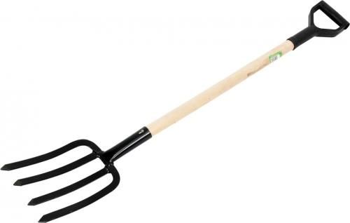 Tradycyjne widy ogrodnicze przeznaczone do wielu zastosowa np. kopania, adowania, przerzucania. Cztery paskie stalowe, zaostrzone zby. Trwale osadzone na drewnianym trzonku z uchwytem z tworzywa sztucznego typu DY. EAN: 5906083358654 Jednostka: SZT Dugo cakowita [cm]: 122 Ilo zbw: 4 Rodzaj trzonka: drewniany Materia: stal