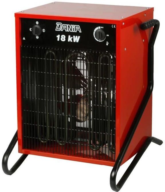 Nagrzewnica DANIA posiadają wytrzymałą, metalową obudowę z mocnymi, izolowanymi (ze względów bezpieczeństwa) uchwytami do przenoszenia. Wewnątrz nagrzewnicy znajdują się wykonane ze stali nierdzewnej elementy grzejne, które są dodatkowo odizolowane od obudowy. Zawarty jest tam również termostat bezpieczeństwa, który chroni nagrzewnicę przed przegrzaniem i zabezpiecza przed powstaniem zagrożenia pożarowego. Regulacja mocy dokonywana jest za pomocą przełącznika, który może być ustawiony w pozycji 1/2 lub 1/1 w zależności od oczekiwanego efektu cieplnego. Wbudowany termostat wewnętrzny zapewnia utrzymanie żądanej temperatury. Nagrzewnice DANIA mogą być używane do ogrzewania mieszkań, a także w sektorze rolnym, usługach i budownictwie. Są one idealne do ogrzewania małych i średnich pomieszczeń, takich jak: pomieszczenia mieszkalne, warsztaty, sklepy, magazyny, domy letniskowe itp. Za pomocą nagrzewnic można także ogrzewać duże pomieszczenia, takie jak: szklarnie, hale sportowe, zabudowania fabryczne. Do tych zastosowań można użyć większej ilości nagrzewnic, aby wystarczająco nagrzać pomieszczenia. Nagrzewnice DANIA są wytwarzane i certyfikowane zgodnie z odpowiednimi standardami europejskimi. Dane techniczne Wydajność, (kW): 9/18 Wydajność, (kcal/t): 7740/15400 Wydajność, (kj/t): 32400/64800 Napięcie zasilania, (V): 3x400 Maks. zużycie prądu, (A): 26 Średnica wentylatora, (mm): 350 Przepływ powietrza, (m²/t): 1900 Wymiary, (mm): 620x570x530 Waga, (kg): 26,0 IP: 44