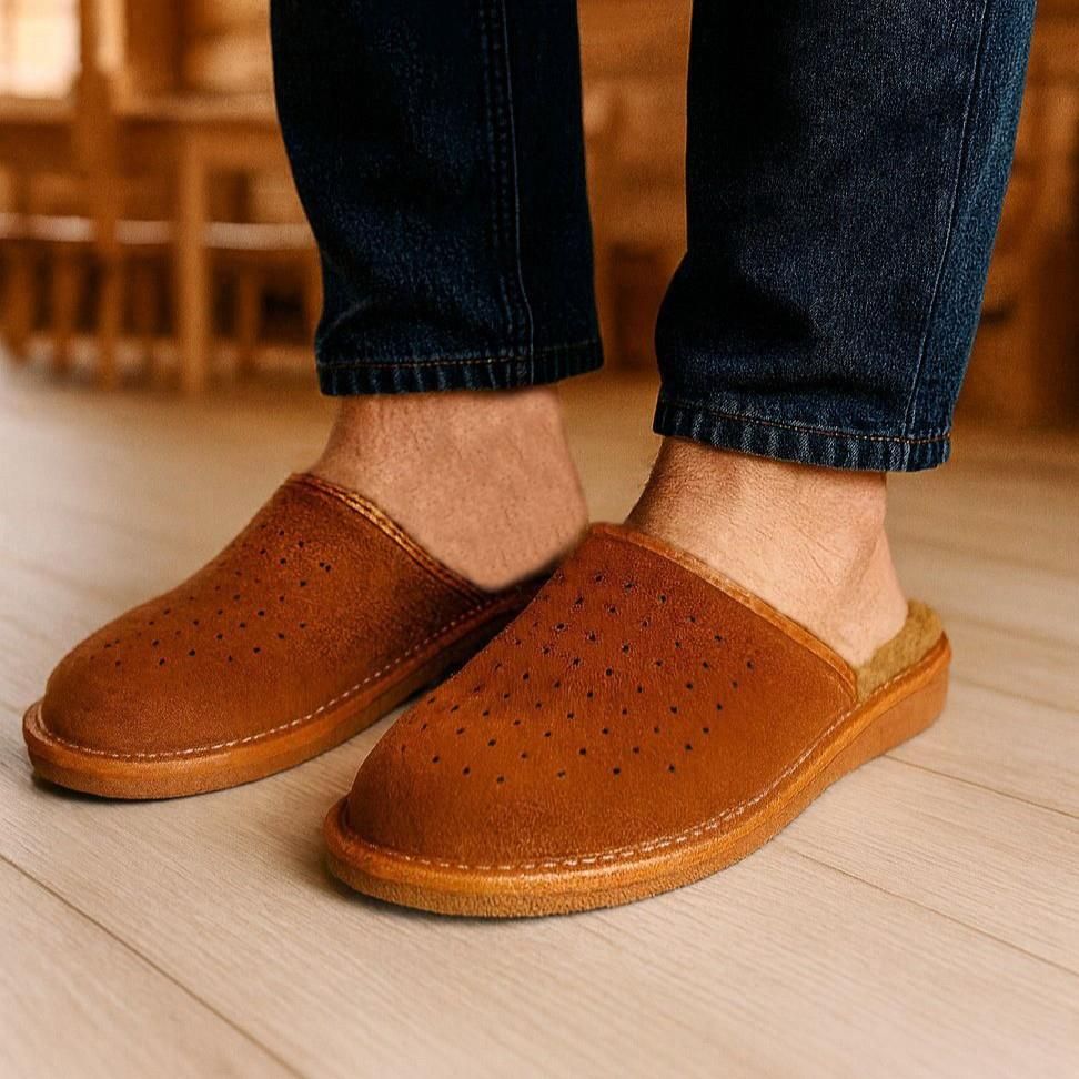 Kapcie Męskie Ocieplane Brąz 370 Poczuj domowe ciepło tak naturalne, jak przytulne lato na Podhalu. Te ciepłe, welurowe kapcie męskie model 370 to synonim wygody, elegancji i funkcjonalności. Przedstawiamy Państwu nasze tradycyjne męskie kapcie ocieplane z Podhala. To sprawdzone, cieszące się dużą popularnością produkty, które produkujemy od trzech dekad w niezmienionej formie. Wygodne i funkcjonalne Te kapcie to synonim wygody. Świetnie trzymają się stopy, dzięki czemu są idealne do noszenia w domu. Wykonane są z weluru, który jest nie tylko elegancki, ale także wyjątkowo miękki i przyjemny w dotyku. Dodatkowo, kapcie są ocieplane, co zapewnia ciepło i komfort nawet w chłodniejsze dni. Przemyślany design Kapcie charakteryzują się delikatnym dziurkowanym wzorem, który zapewnia prawidłową cyrkulację powietrza. Dzięki temu stopy mają zapewniony należyty komfort użytkowania. Wierzch koloru brązowego weluru jest perfekcyjnie ukształtowany, z „noskami” idealnie dopasowanymi do kształtu palców. Najważniejsze korzyści: Miękki welur łączy elegancję z przyjemnością w dotyku Ocieplenie z miękkiego włókna zapewnia stopy ciepłe nawet w mroźne wieczory Antypoślizgowa podeszwa dba o bezpieczeństwo na każdej powierzchni Delikatna perforacja wspomaga wentylację i zapobiega przegrzewaniu Idealny fason – klasyczny i dopasowany, z dbałością o detale („noski” palców) Polska jakość od 30 lat – sprawdzona konstrukcja z regionu Podhala Rozmiary dostępne: 40–46 (sprawdź tabelę wkładek i wybierz najlepiej dopasowany). Te kapcie to idealny prezent – dla siebie, bliskiej osoby lub taty, który zasługuje na komfort każdego wieczoru. Rozmiar Długość wkładki 40 25,5 cm 41 26 cm 42 27 cm 43 28 cm 44 29 cm 45 29,5 cm 46 30,5 cm