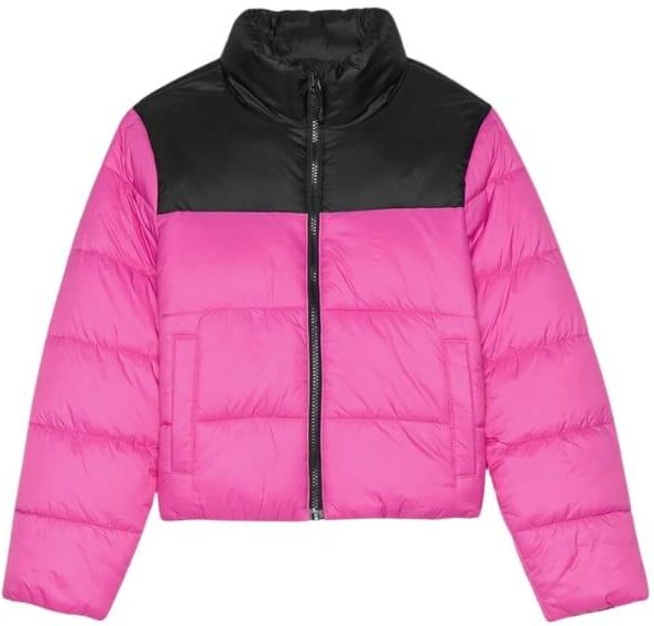 Kurtka puchowa z wypełnieniem syntetycznym dziewczęca 4F Dziewczęca kurtka puchowa 4F ze stójką to idealny wybór na chłodniejsze dni, zarówno na co dzień, jak i podczas aktywności sportowych. Dzięki optymalnej gramaturze wypełnienia zapewnia skuteczną ochronę przed zimnem bez zbędnego obciążenia. Jej umiarkowana objętość gwarantuje komfort cieplny, a jednocześnie pełną swobodę ruchów w zróżnicowanych warunkach pogodowych. Klasyczne poziome pikowanie w postaci równoległych pasów nie tylko podkreśla sportowy charakter kurtki, ale także wspomaga izolację termiczną i umożliwia łatwe kompresowanie odzieży. Kurtka ma regularny krój i standardową długość sięgającą do linii bioder, co zapewnia wygodne dopasowanie do sylwetki i komfort noszenia. Wypełnienie z puchu syntetycznego to praktyczne rozwiązanie, jest trwałe, szybkoschnące i odporne na działanie wilgoci. W przeciwieństwie do puchu naturalnego, nie traci właściwości izolacyjnych po zamoczeniu i nie wymaga skomplikowanej pielęgnacji. Zewnętrzna warstwa materiału została pokryta hydrofobową powłoką impregnacyjną, która ogranicza wchłanianie wilgoci – krople wody skraplają się na powierzchni i spływają, nie wnikając w tkaninę. Dodatkowo zastosowana technologia 4FWarm wspiera utrzymanie optymalnej temperatury ciała. Kurtka została wykonana w 100% z materiałów pochodzących z recyklingu, co potwierdzają certyfikaty wydane przez niezależne instytucje. Szczegóły: Krój regular, który wygodnie dopasowuje się do sylwetki. Standardowy fason sięgający do bioder. Klasyczne poziome pikowanie. Poliestrowa, gładka podszewka. Hydrofobowa powłoka materiału zewnętrznego ogranicza wchłanianie wilgoci. Technologia 4FWarm wspiera komfort cieplny. Niska stójka. Mankiety zakończone gumą. Dwie otwarte kieszenie boczne. Jednokierunkowy zamek główny z wewnętrzną plisą przeciwwiatrową. Dół z elastyczną gumą. Wypełnienie z puchu syntetycznego pochodzącego z recyklingu. Materiał główny: Poliamid 100% Podszewka: Poliester 100% Wypełnienie: Poliester 100% TDJAF452-55S
