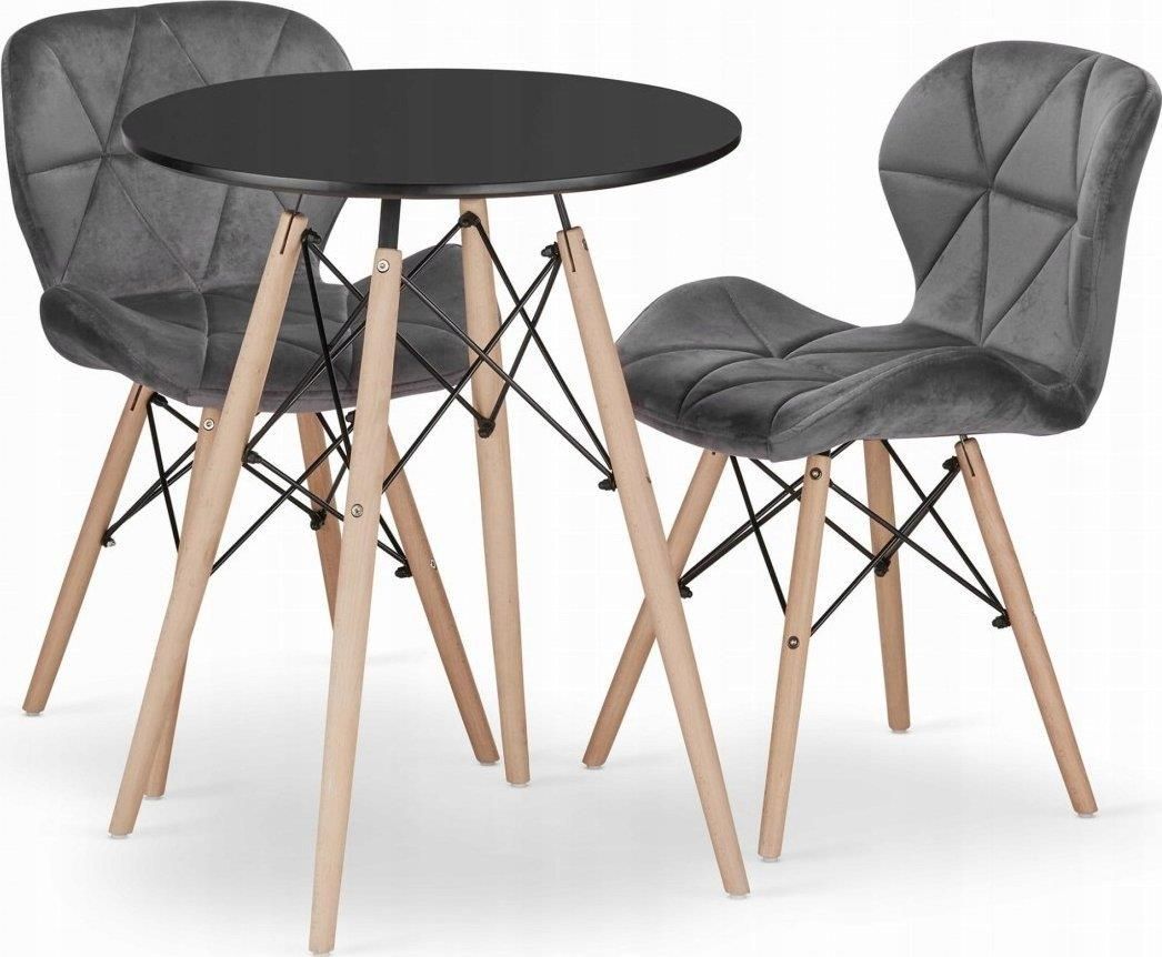 Leobert Zestaw Stół Okrągły Todi 60 Czarny + 2 Krzesła Lago Szare Brzeg