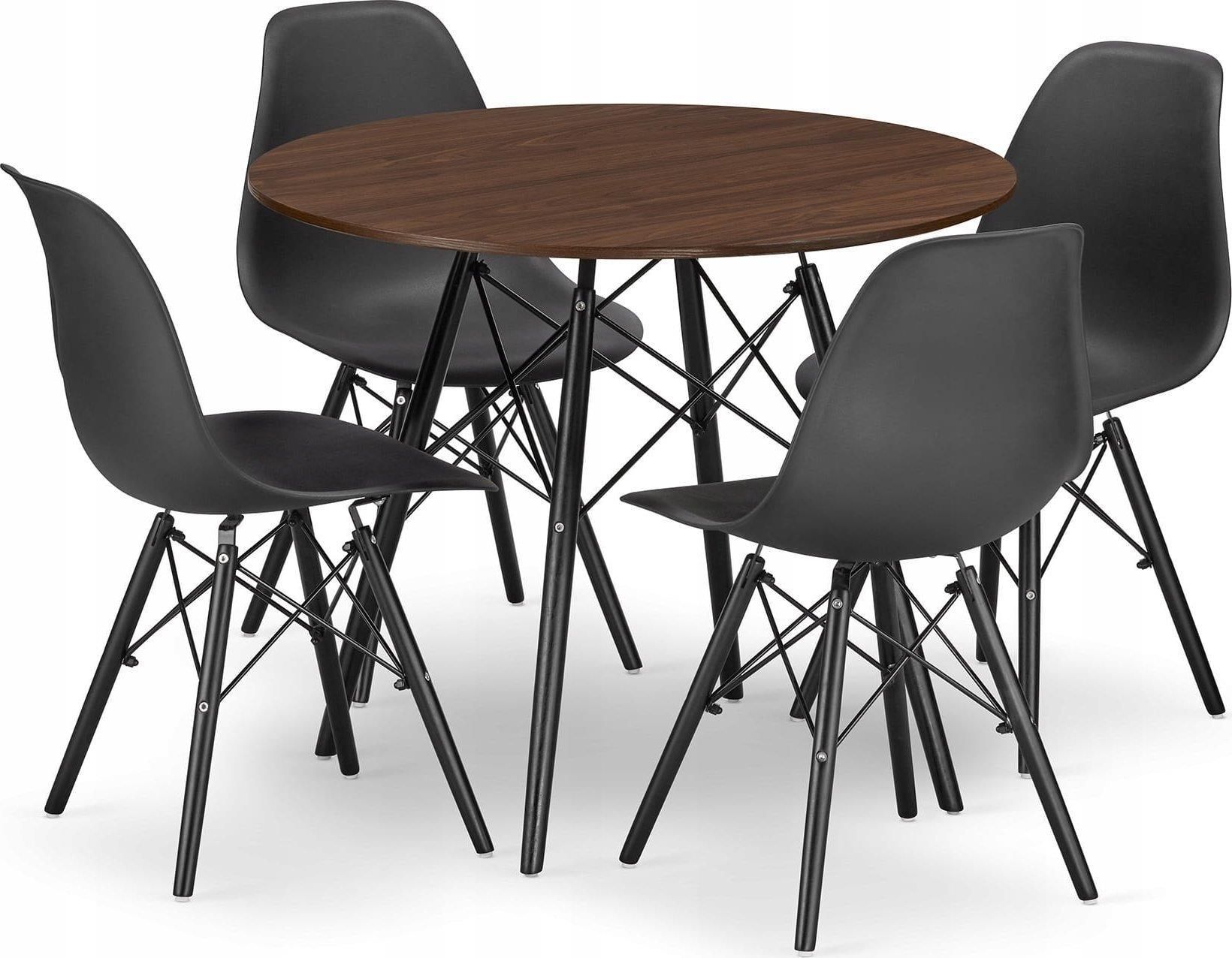 Leobert Zestaw Stół Okrągły Todi 80 Jesion + 4 Krzesła Osaka Czarne Brzeg