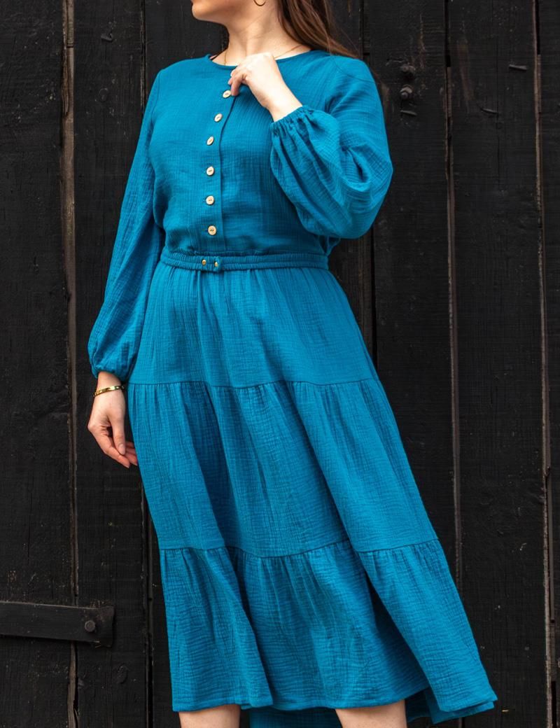 Muślinowa sukienka boho midi z długim rękawem z 100% bawełny w stylu etno Sukienka Isabella uszyta została z miękkiego, lekkiego materiału — to idealny wybór na letnie dni, gdy chcesz czuć się swobodnie, a jednocześnie stylowo. Jej długość poniżej kolan nadaje sylwetce subtelny urok i elegancję. Luźny krój i długie rękawy zapewniają komfort i swobodę ruchów, a okrągły dekolt podkreśla szyję, dodając kobiecości i romantycznego charakteru. Sukienka świetnie wygląda z paskiem z eko-skóry. ???? Dla kobiet w ciąży i karmiących mam: Isabella to praktyczny i wygodny wybór dla przyszłych i młodych mam. Luźny krój umożliwia wygodne noszenie sukienki na każdym etapie ciąży, nie uciskając brzucha. Rozpinany dekolt na guziki pozwala na łatwe i dyskretne karmienie dziecka. Naturalna, oddychająca bawełna muślinowa to idealny materiał dla wrażliwej skóry, zwłaszcza w upalne dni. Cechy: Różne kolory Dekolt na guziki Długi rękaw Luźny krój Guziki z eko-materiału Rękawy wykończone gumką Na zdjęciu modelka ma na sobie rozmiar M. Skład: 100% bawełna (muślin) Sukienka Isabella doskonale sprawdzi się nie tylko na co dzień, ale także jako stylizacja na: średniowieczne jarmarki i festiwale rekonstrukcje historyczne i gry fabularne (LARP) sesje zdjęciowe w stylu etno i boho bajkowe i mistyczne przebrania wydarzenia tematyczne, kręgi kobiet i stylizowane imprezy Jej uniwersalny design łatwo dopasujesz do stylu — dodaj pasek, biżuterię lub nakrycie głowy, by uzyskać styl czarodziejki, podróżniczki, chłopki czy szlachcianki. Wszystkie nasze produkty szyjemy sami w naszym Atelier :) Lariko Studio to polska rodzinna firma tworzona z miłością i dbałością o każdy detal.