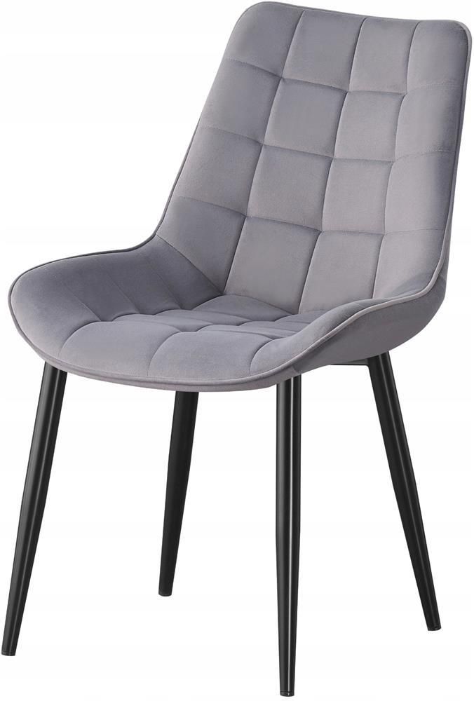 MALMO Krzesło Tapicerowane Ciemny Szary Welur Pikowane Brzeg