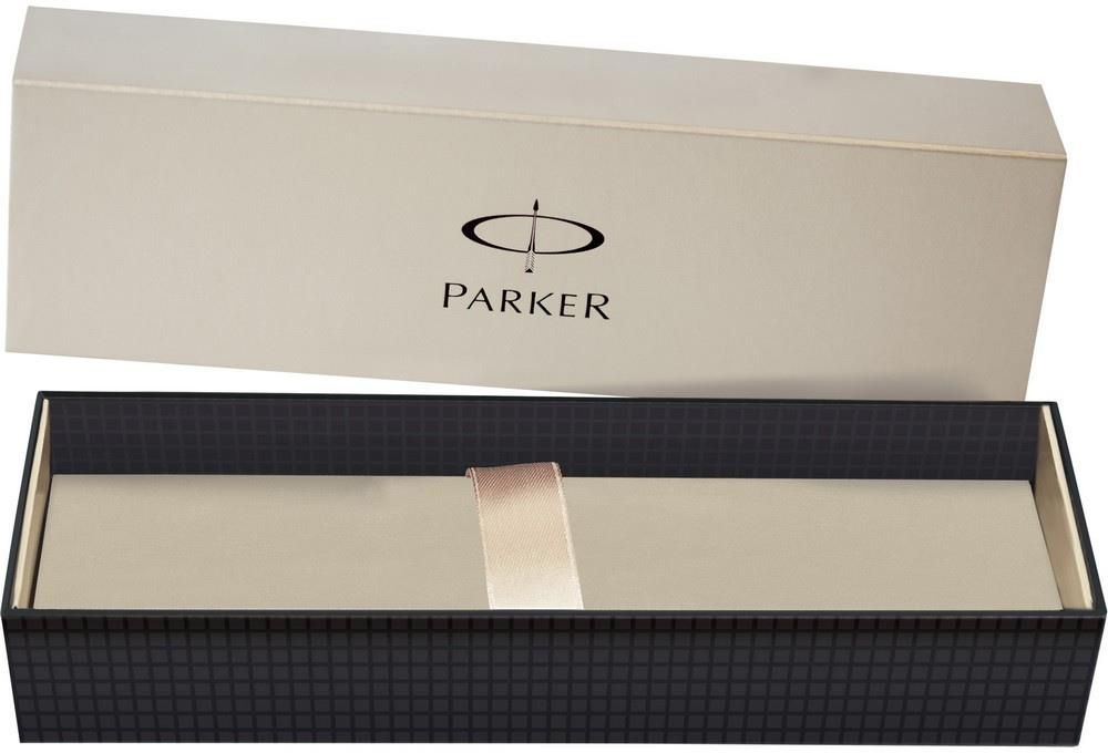 Etui Parker w kolorze brązowym na 1 lub 2 produkty. Pod wstążką znajdują się gumki stabilizujące układ produktów. Etui dodatkowo zabezpieczone jest białą kartonową obwolutą transportową.
