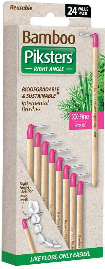 Piksters Bamboo Right Angle 24Szt. Biodegradowalne Szczoteczki Międzyzębowe Wybierz Rozmiar Brzeg