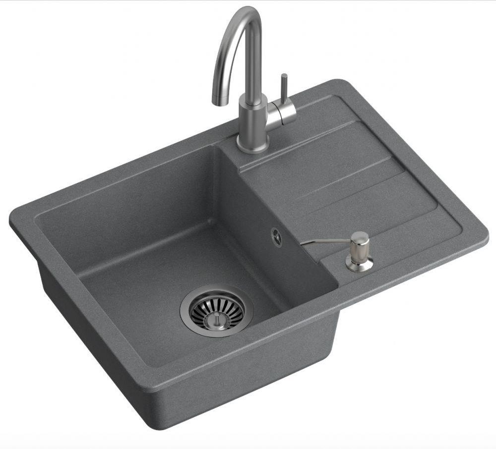 Zestaw Komplet gotowy do działania READY MAX SZARY Zestaw Zlewozmywak + Bateria + Dozownik + Syfon Komfort użytkowania Duża wygodna komora Zlewozmywak granitowy 1 komora Wymiary (cm) (77x44x17,5) Bateria z elastyczną wylewką Dozownik stalowy Syfon Gwarancja producenta 24 m.
