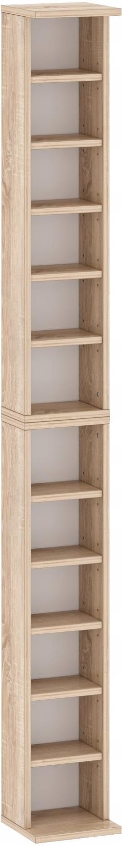 Regał na płyty CD/DVD regulowane półki dąb sonoma PODSTAWOWE PARAMETRY Kolekcja: CD regały Kolor mebla: dąb sonoma Materiał: płyta laminowana Wysokość mebla: 183.6 cm Głębokość mebla: 20 cm Szerokość mebla: 21 cm Liczba półek: więcej niż 6 Montaż: meble do samodzielnego montażu Wykończenie: mat …