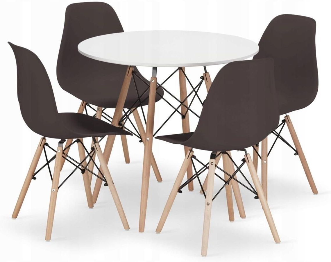 Zestaw stół z krzesłami: stół okrągły TODI 80 biały + 4 krzesła OSAKA kawowe Brzeg
