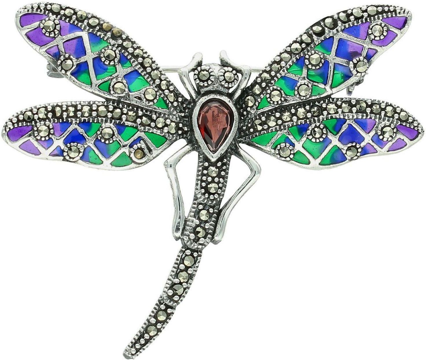 Diament Broszka Srebrna Damska 925 Zdobiona Kolorową Emalią i Markazytami – DIA-BRO-13000-925 | Elegancka Biżuteria Brześć Kujawski