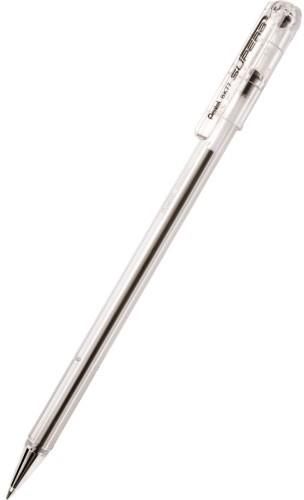 Długopis Pentel Superb BK77 – czarny Długopis Pentel Superb BK77 to klasyka wśród długopisów biurowych — połączenie niezawodności, precyzji i elegancji w prostym wydaniu. Wyposażony w czarny wkład olejowy, gwarantuje płynne pisanie, równomierny przepływ tuszu oraz intensywny kolor, który pozostaje trwały i odporny na rozmazywanie. Charakterystyczna przezroczysta obudowa umożliwia kontrolę poziomu tuszu, a ergonomiczny kształt zapewnia wygodę użytkowania nawet podczas długiego pisania. Dzięki precyzyjnej końcówce i wysokiej jakości wykonania, długopis BK77 sprawdzi się doskonale zarówno w biurze, jak i w szkole, urzędzie czy w codziennym użytkowaniu domowym. Najważniejsze zalety: Długopis z wymiennym wkładem – ekonomiczny i ekologiczny wybór. Prosta przezroczysta obudowa – umożliwia bieżącą kontrolę ilości tuszu. Cechy użytkowe: funkcjonalność pisania, niezmienność, szybki czas wysychania, wodoodporność i światłotrwałość. Kolor tuszu: czarny – intensywny i wyrazisty. Grubość końcówki: 0,7 mm – precyzyjna i gładka linia pisania. Grubość linii pisania: 0,27 mm – cienka, estetyczna kreska. Długość linii pisania: do 1700 m – wyjątkowa wydajność. Końcówka wykonana z niklowanego srebra – trwała i odporna na zużycie. Kulka ze stali hartowanej – wysoka jakość wykonania i niezawodność. Lekki i wygodny w użytkowaniu – idealny do długiego pisania. Marka Pentel – gwarancja jakości, precyzji i trwałości. Zastosowanie: Długopis Pentel Superb BK77 w kolorze czarnym to doskonały wybór do codziennego pisania, podkreślania, poprawiania lub pracy z dokumentami. Idealny dla uczniów, studentów i pracowników biurowych. Dzięki trwałemu tuszowi i niezawodnej konstrukcji zapewnia komfort i estetykę pisania w każdej sytuacji. -1