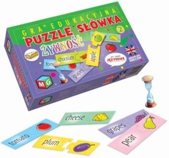 "Puzzle - Słówka" to gra i zabawka dla dzieci, które umieją już czytać i można je zachęcić do nauki języka angielskiego. Zabawka zawiera 30 dwuczęściowych elementów. Na jednej części znajduje się obrazek, na drugiej jego angielska nazwa. Znajdowanie i łączenie pasujących do siebie par puzzli, umożliwia indywidualną zabawę, w której dziecko może w skupieniu poznać pierwsze angielskie słowa. "Puzzle - Słówka", to także gra w której grupa dzieci może uczyć sie przez zabawę w czasie emocjonującej rozgrywki. Zawartość pudełka: tabliczki - 30 szt (60 puzzli) klepsydra, instrukcja. Liczba graczy: 2+ Wiek: 7+