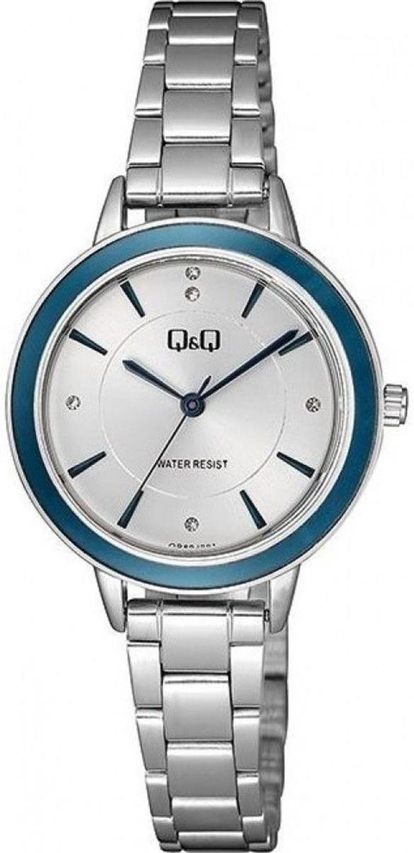MECHANIZM: Zegarek damski na bransolecie QQ QB89-201wyposażony jest w kwarcowy mechanizm, zasilany za pomocą baterii. Posiada bardzo wysoką dokładność mierzenia czasu +/- 10 sekund w przeciągu 30 dni. KOPERTA: Mechanizm japoński mieści się w metalowej, wytrzymałej kopercie. Koperta wykonana z ALLOY’u, czyli bardzo popularnego stopu metali na bazie mosiądzu. Charakteryzuje się stosunkowo niewielka wagą, a jednocześnie dużą wytrzymałością. Koperta nie zawiera niklu i innych pierwiastków szkodliwych dla zdrowia. Wykorzystanie wysokiej jakości stali w deklu (dolna część zegarka) gwarantuje, że czasomierz odporny jest na korozję i uszkodzenia oraz nie powoduje alergii. Stop stali szlachetnej charakteryzuje się optymalna odpornością na korozje. W zegarkach Q&Q wykorzystany jest jeden z najlepszych stopów stali 316 L. SZKŁO: Zegarek wyposażony w szkło mineralne ( 5 stopień w skali Mohsa) - najczęściej spotykane, bardzo przejrzyste, czyste, cienkie, elastyczne i odporne na pęknięcia. TARCZA: Tarcza zegarka okrągła, srebrna z wyraźnymi granatowymi indeksami idealnie pasującymi do całości zegarka. Wskazówki w tym modelu są w czarnym kolorze. Na tarczy umieszczone są cyrkonie. BRANSOLETA: Wykorzystanie wysokiej jakości metalu w bransolecie gwarantuje, że zegarek odporny jest na korozję i uszkodzenia. Bransoletka występuje w kolorze srebrnym ZAPIĘCIE: Eleganckie zapięcie typu zatrzask. WODOSZCZELNOŚĆ: Zegarek z wodoszczelnością 30m (3 ATM), gwarantuje właścicielowi, że nie musi bać się zachlapań, czyli np. mycia rąk. Zapoznaj się z pozostałą ofertą ofertą damskich zegarków . Zegarki damskie są dla kobiet biżuterią ale również praktycznym dodatkiem. Oprócz sprawdzenia czasu kobiety uwielbiają za pomocą zegarka sprawdzać swoją aktywność fizyczną. Aktualnie zegarki potrafią zachęcić do wzmożonej aktywności fizycznej poprzez posiadanie funkcji takich jak: zliczanie wyników, dopingowanie do osiągania wyznaczonego celu, wyniku aktywności w ciągu dnia. Swój wymarzony model znajdą u Nas kobiety, które uwielbiają domowe zacisze ale również te o rozrywkowym podejściu do życia. Do wyboru mamy zatem typowo klasyczne modele o stonowanych kolorach, ekskluzywne zegarki złote damskie, czy modowe egzemplarze zachwycające swoim niebanalnym widokiem. Zegarek damski japońskiej marki Q&Q na rękę może przyjąć różny wygląd i styl. Niezwykle dużą popularnością cieszą się egzemplarze od tej wieloletniej firmy z tradycją. Marka ta zyskał uznanie na polskim rynku dzięki oryginalnym i ponadczasowym wzorom stosowanym w swoich produktach. Uniwersalne zegarki damskie czarne i białe o doskonałym wykonaniu skradają serca wielu Pań w różnym wieku. Niektóre to całkowicie klasyczne modele, inne bardziej szałowe zyskały intensywny złoty kolor oraz różnego rodzaju zdobienia w postaci szlifu słonecznego lub nałożonych na tarczę połyskujących kamyków. Bez najmniejszego problemu znajdziemy tutaj modowe zegarki na bransolecie damskie, czy proste na tradycyjnym skórzanym pasku. Marka japońskich zegarków Q&Qpojawiła się na rynku po raz pierwszy w roku 1976. Od pewnego czasu, marka Q&Q rozwija się prężnie w dziedzinie zegarków elektronicznych, i analogowych zegarków kwarcowych. Sama nazwa – Q&Q – pochodzi od angielskiego Quality & Quantity (Jakość i Ilość), co oznacza produkcję z zachowaniem wysokich standardów jakości. Każdy znajdzie dla siebie odpowiedni zegarek ,szeroki asortyment marki, bogate wzornictwo i nowoczesne technologie zadowolą każdego użytkownika. Nasz sklep internetowy z zegarkami Q&Q jest autoryzowanym dystrybutorem marki. Wszystkie damskie i męskie zegarki Q&Q zakupione w naszym sklepie posiadają 2 letnią gwarancję (z możliwością przedłużenia gwarancji do 3 lat) i zapakowane są w oryginalne opakowanie producenta. Jest to eleganckie pudełko do zegarka z logiem japońskiej marki Q&Q.
