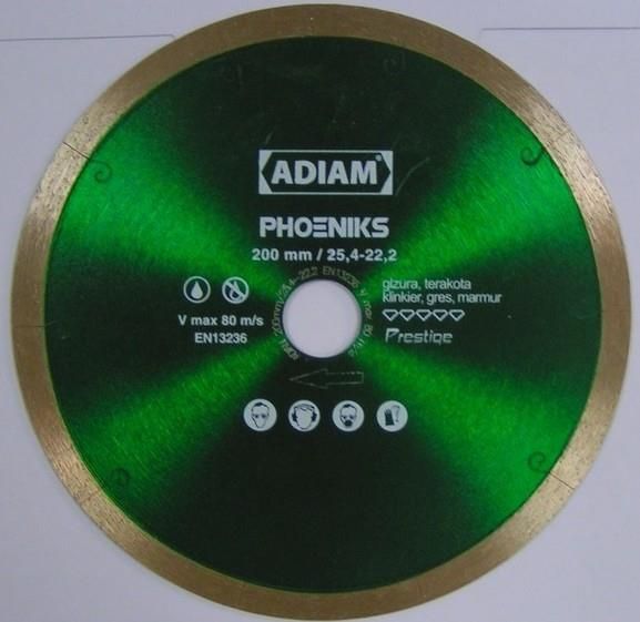 Tarcza diamentowa PHOENIKS jest specjalistyczną tarcza do cięcia bardzo twardych płytek gresowych z przeznaczeniem na mokro. Idealny produkt dla szukających dobrej tarczy do cięcia cienkich elementów o dużej twardości: gresu, granitu, dachówki, glazura, klinkier twardy, marmur. Tarcza ADIAM …