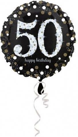 BALON FOLIOWY LICZBA 50, SPARKLING BIRTHDAY 50 Wymiar balonów w centymetrach: 43 cm Kolor: Wielokolorowy Nadruk:napis "50 HAPPY BIRTHDAY" Producent: Amscan Ilość sztuk w opakowaniu: 1 Balony przeznaczone są do napełnienia powietrzem lub helem.