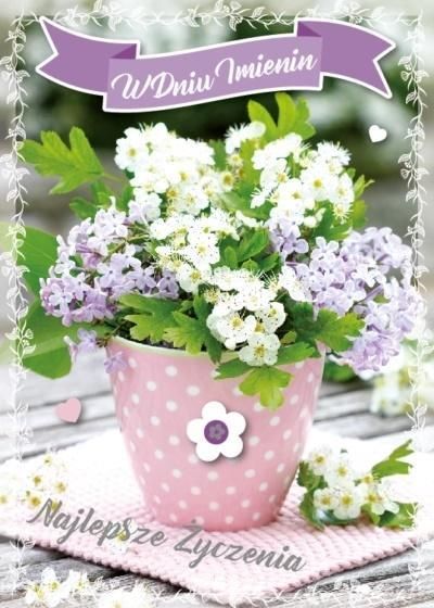 W dniu imienin - kartka - wiosenne kwiaty GM-724 AS Karnet formatu B6 ze srebrzeniami, a także z przestrzennymi elementami na froncie. Zawiera życzenia i kolorowy środek. W zestawie znajduje się koperta, kolorystycznie uzupełniająca się z kartką. Wymiary kartki: 12,5 x 17,5 cm Tytuł: W dniu imienin …