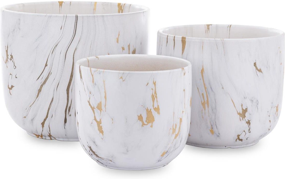 Osłonka Kpl. 3 Szt.. Materiał: ceramika. Rozmiar: 20,5x24x24 17,5x20x20 14,5x16,. Kolor: biały, złoty. Artykuły dekoracyjne z kolekcji Modern Collect...