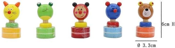 Kreatywna zabawa dla każdego dziecka!Drewniany stempel z tuszem Szukasz oryginalnego dodatku do swoich projektów? Drewniany stempel z tuszem to idealne rozwiązanie! Wykonany z wysokiej jakości drewna, wygodny w użyciu i niezwykle trwały. Dzięki niemu możesz ozdabiać kartki, zaproszenia, notatniki i wiele innych powierzchni, nadając im unikalny charakter. Pięć wyjątkowych wzorów do wyboru W ofercie znajdziesz pięć różnych wzorów, które dopasujesz do swojego stylu i potrzeb. Możesz wybrać motyw zwierzątek tj. myszka, kotek , biedronka czy żabka – każdy wzór został zaprojektowany z dbałością o szczegóły. Stemple świetnie sprawdzą się zarówno dla dzieci, jak i dorosłych miłośników rękodzieła. Praktyczny i gotowy do użycia Stempel posiada wbudowaną poduszkę z tuszem, dzięki czemu jest gotowy do pracy od razu po otwarciu. Tusz jest trwały i szybkoschnący, co zapewnia estetyczne odbicia bez rozmazywania. To doskonały gadżet dla osób kreatywnych, które cenią sobie wygodę i jakość Korzyści rozwojowe dla dziecka:Rozwija kreatywność – pozwala na tworzenie własnych wzorów i kompozycji.Ćwiczy motorykę małą – poprawia precyzję ruchów dłoni i palców.Wzmacnia koordynację ręka-oko – pomaga w lepszej kontroli ruchów.Pobudza wyobraźnię – inspiruje do nowych pomysłów i artystycznych eksperymentów.Rozwija cierpliwość i koncentrację – dziecko uczy się staranności i dokładności.Wspiera naukę poprzez zabawę – może być wykorzystywany do nauki liter, kształtów czy wzorów.Funkcje stempla:Dekoracyjna – idealny do ozdabiania kartek, zaproszeń i notatek.Edukacyjna – pomaga w nauce przez zabawę, np. w rozpoznawaniu wzorów.Zabawowa – świetna rozrywka dla dzieci, rozwijająca ich zdolności manualne.Personalizacyjna – umożliwia tworzenie unikalnych wzorów i oznaczanie własnych rzeczy. Dane techniczne:wym. stempelka: 3,3 x 6 cm.wym. opakowania: 23 x 7,5 x 20 cm.wiek: 3+