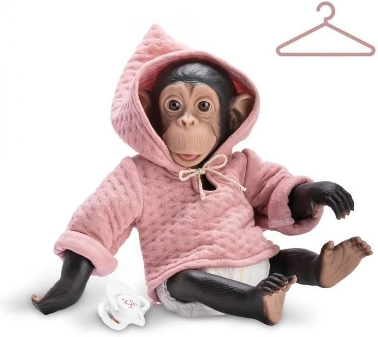 Różowa ciepła, miękka bluza z kapturem została zaprojektowana specjalnie dla małpki hiszpańskiej o imieniu Lola z unikalnej kolekcji ASI Animal Reborn. Umieszczona na tekturowym wieszaczku z logo marki ASI i zapakowany w foliowe opakowanie uatrakcyjnia zabawę pachnącymi wanilią małpkami. EAN: 8435384459779