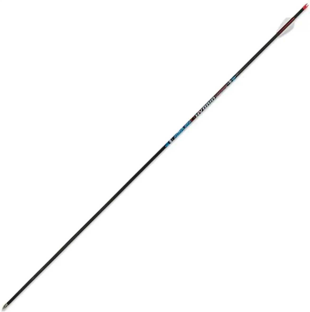 Wykonana z włókna węglowego strzała o długości 30 cali, zakończona wklejonym grotem. Giętkość strzały (spin) wynosi 700. Wyposażona w lotki o długości 1,75 cala, z jedną lotką prowadzącą. Lotki wykonane zostały z tworzywa, które jest znacznie wytrzymalsze niż tradycyjnie stosowane pierze.