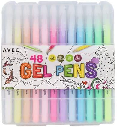 Długopisy żelowe AVEC Gel Pens 48 szt. Notatki, listy czy spotkania zapisane w kalendarzu staną się prawdziwymi dziełami sztuki dzięki żelowym długopisom w jaskrawych, brokatowych, metalicznych i pastelowych kolorach tęczy. Cechy: Płynnie piszące długopisy żelowe Jaskrawe, brokatowe, metaliczne i …