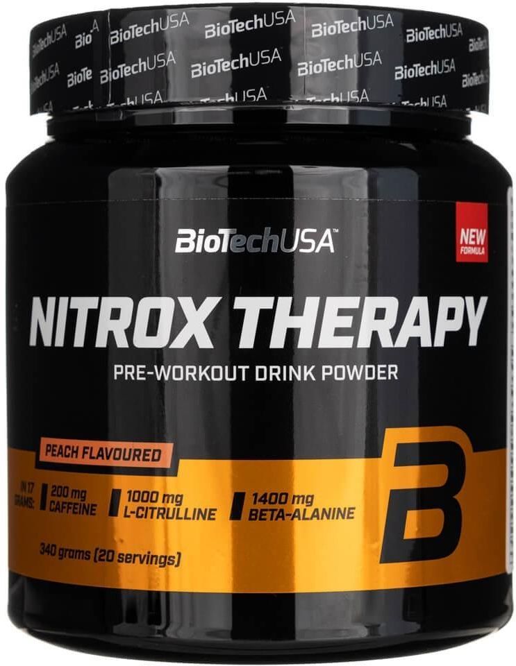 Bio Tech Usa Nitrox Therapy 340G Bio Tech Usa Nitrox Therapy 340G to zaawansowany suplement przedtreningowy, który wspiera Twoją wydolność fizyczną i efektywność treningów. Dzięki starannie dobranym składnikom, ten produkt może znacząco przyczynić się do osiągania lepszych wyników sportowych. Oferuje on unikalną formułę, która wyróżnia się na tle konkurencji, co czyni go idealnym wyborem dla osób dążących do maksymalizacji swoich osiągnięć. Skład i forma produktu Nitrox Therapy występuje w formie proszku, co ułatwia przygotowanie napoju przedtreningowego. Zawiera szereg składników aktywnych, które współdziałają, aby poprawić wydolność i zwiększyć energię. W składzie produktu znajdziesz m.in. kompleks węglowodanów, beta-alaninę, L-argininę, L-cytrulinę oraz mikronizowaną kreatynę, które wspierają krążenie i dotlenienie mięśni. Dodatkowo, obecność mikronizowanej kreatyny wspomaga regenerację oraz zwiększa siłę mięśni. To idealna kombinacja dla osób, które chcą maksymalizować swoje wyniki na treningach siłowych i wytrzymałościowych. Smak i aromat Aby uczynić czas treningu jeszcze przyjemniejszym, Nitrox Therapy dostępny jest w smaku soczystej brzoskwini. Ten owocowy aromat sprawia, że przygotowanie napoju staje się przyjemnością, a nie obowiązkiem. Dobrze dobrany smak jest istotny, zwłaszcza dla tych, którzy regularnie sięgają po suplementy. Pyszny smak brzoskwini sprawia, że każdy trening nabiera nowego wymiaru, a picie napoju przedtreningowego staje się przyjemnym rytuałem. Wielkość opakowania i ilość porcji Produkt dostępny jest w opakowaniu o pojemności 340 g, co przekłada się na 20 porcji po 17 g. To wystarczająca ilość, aby zaspokoić potrzeby treningowe przez dłuższy czas. Dzięki temu opakowaniu możesz łatwo kontrolować swoje spożycie oraz ocenić opłacalność zakupu. Taka ilość sprawia, że suplement jest zarówno ekonomiczny, jak i praktyczny, idealny dla osób regularnie trenujących. Zalecane dawkowanie i przeznaczenie Zalecane dawkowanie Nitrox Therapy to jedna miarka (17 g) wymieszana z 250 ml wody, spożywana około 30 minut przed treningiem. Taki czas na przyjęcie suplementu pozwala na wykorzystanie jego pełnego potencjału w czasie intensywnego wysiłku. Suplement przeznaczony jest do zwiększenia wydolności podczas treningów siłowych oraz poprawy wytrzymałości w sportach wymagających długotrwałego wysiłku. Przeciwwskazania: Produkt nie jest przeznaczony dla osób poniżej 18 roku życia oraz dla kobiet w ciąży lub karmiących. Należy również mieć na uwadze, że suplement nie powinien być stosowany przez osoby z nadwrażliwością na jakikolwiek ze składników preparatu. W okresie ciąży oraz karmienia piersią przed zastosowaniem należy skonsultować się z lekarzem lub farmaceutą. Dostosowując się do tego dawkowania, możesz być pewien, że wspierasz swoje ciało najlepiej jak to możliwe. Kluczowe korzyści płynące z zastosowania produktu Nitrox Therapy oferuje szereg korzyści, które mogą pomóc w osiąganiu lepszych wyników sportowych. Oto kilka z nich: zwiększona energia, dzięki zawartości kofeiny i innych składników stymulujących suplement ten dostarcza energii, która pozwala na intensywniejsze treningi, poprawa wydolności, kompleks aminokwasów i węglowodanów wspiera długotrwałą wydolność podczas wysiłku, wsparcie dla mięśni, obecność kreatyny wspomaga regenerację i wzmacnia siłę mięśni, co przekłada się na lepsze wyniki, lepsze krążenie, składniki takie jak L-arginina poprawiają przepływ krwi i optymalizują dotlenienie mięśni, przyjemny smak, owocowy aromat brzoskwini sprawia, że suplement jest smaczny i łatwy do spożycia, ekonomiczne opakowanie, 20 porcji w jednym opakowaniu to doskonały wybór dla osób regularnie trenujących, łatwość przygotowania, proszkowa forma umożliwia szybkie przygotowanie napoju przed treningiem. Ewentualne skutki uboczne Użytkownicy powinni być świadomi, że niektóre składniki suplementu mogą powodować reakcje alergiczne u wrażliwych osób. Do potencjalnych skutków ubocznych mogą należeć: bóle głowy, problemy żołądkowe, nadmierne pobudzenie czy bezsenność. W przypadku wystąpienia jakichkolwiek niepożądanych objawów, zaleca się zaprzestanie stosowania i skonsultowanie się z lekarzem. Informacje o kraju pochodzenia Nitrox Therapy pochodzi z Węgier, co może być istotne dla osób zwracających uwagę na kraj pochodzenia produktów, które stosują. To także potwierdza jakość i standardy produkcji, które są istotne w branży suplementów diety.