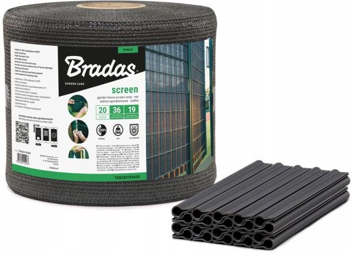 Bradas Taśma Ogrodzeniowa Siatka Cieniująca 19X36M 200 G/M2 Klipsy 20Szt Szar Brzesko