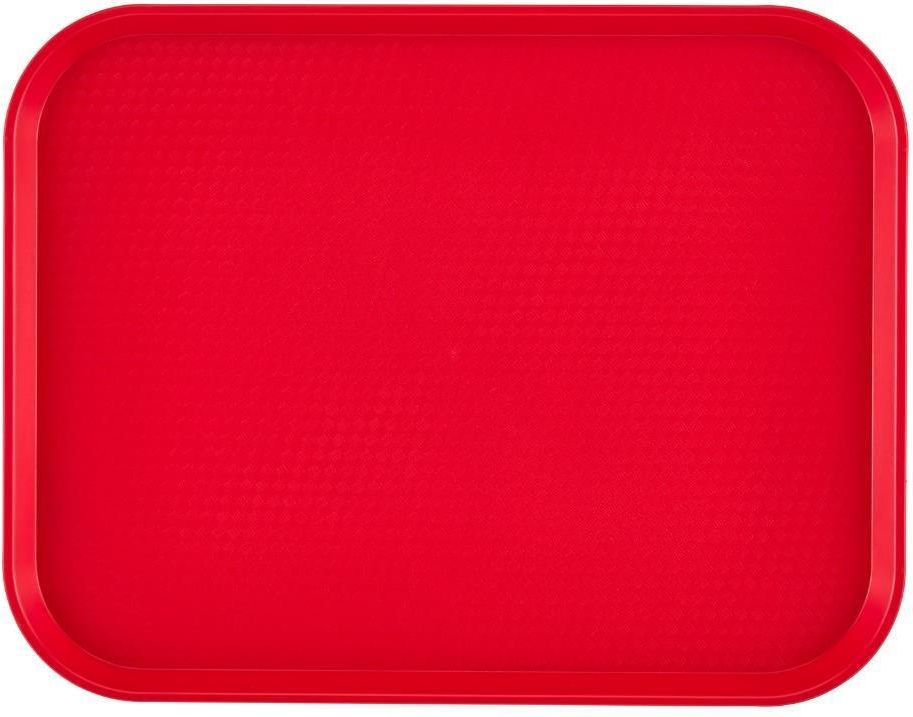 Taca z polipropylenu FAST FOOD nr kat. 1216FF163, 300x410 mm, czerwona Cambro. Przeznaczona dla lokali samoobsługowych i stołówek Wykonana z polipropylenu, odporna na odkształcenia, uderzenia, zarysowania i plamy Teksturowana powierzchnia antypoślizgowa dodatkowo maskuje drobne zarysowania …