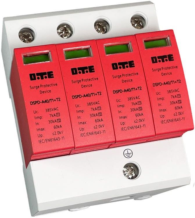 Ogranicznik przepięć DSPD-AC385-60 4P klasy T1+T2 (B+C) zapewniają kompletną ochronę instalacji elektrycznej oraz zasilanych z niej urządzeń elektrycznych przed działaniem części prądu piorunowego oraz wszelkiego rodzaju przepięciami. Ograniczają przepięcia i sprowadzają do ziemi prądy udarowe pochodzące od obu rodzajów przepięć – bezpośrednich oraz pośrednich. Zapewniają jednocześnie dwustopniowy poziom ochrony. Ich stosowanie nie wymaga używania dławików odsprzęgających. Ochronnik przepięć BC zapewnia skuteczną ochronę komputerów, urządzeń RTV/AGD i innych. Model ochronnika BC posiada budowę modułową oraz sygnalizację zadziałania na przedniej części urządzenia, spełniają wymagania z zakresu ochrony klasy I i II.DANE TECHNICZNE: Znamionowe napięcie AC [V]: 385 Zdolność gaszenia prądu następczego [kA]: 7 Klasa ochronności: Typ 1+2 Prąd udarowy (10/350) [kA]: 7 Graniczny prąd wyłądowczy (8/20us)[kA]: 60kA Prąd znamionowy (8/20us)[kA]: 30kA Maksymalne napięcie trwałej pracy AC [V]: 385 Poziom ochrony [kV]: 2.0 Rozmiar: 4 moduły Liczba biegunów: 4 Przekrój przewodu elastycznego z końcówką tulejkową [mm2]: 35 Przekrój przewodu sztywnego (jednodrutowy, wielodrutowy) [mm2] : 35 Maks. przekrój przewodu elastycznego [mm2]: 35 Sposób montażu: Szyna DIN Maks. przekrój przewodu (jedno-/wielodrutowego) [mm2]: 35