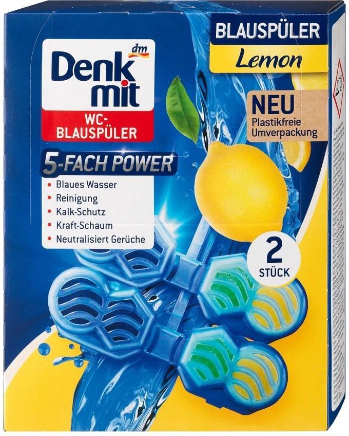 Denkmit Zawieszka do WC Lemon Koloryzująca 2 sztuki Denkmit Zawieszka do WC Lemon Koloryzująca to rewolucyjne rozwiązanie, które zapewnia 5-krotną moc dla niebieskiej wody i skuteczne czyszczenie. Nasza zawieszka, dzięki połączeniu aktywnych składników, nie tylko zapobiega gromadzeniu się brudu spowodowanego przez kamień i osad z moczu, ale także neutralizuje nieprzyjemne zapachy, zapewniając czystość przy każdym spłukaniu. Dodatkowo, zapewnia długotrwały, odświeżający zapach cytrusowy. Nasza zawieszka do WC nie tylko nadaje kolor wodzie, ale także zapewnia silne czyszczenie. Specjalne składniki zawarte w produkcie skutecznie zwalczają brud powstały z kamienia i osadu z moczu, utrzymując toaletę czystą i świeżą. Już przy każdym spłukaniu Twoja toaleta otrzymuje zbawienne działanie czyszczące. Dodatkowo, nasza zawieszka neutralizuje nieprzyjemne zapachy, pozostawiając w toalecie przyjemną atmosferę. Długotrwały cytrusowy zapach dodaje świeżości i przyjemności każdej wizycie. Wybierz Denkmit Zawieszkę do WC Lemon Koloryzującą i doświadcz mocnego czyszczenia oraz długotrwałego cytrusowego zapachu. Ciesz się nie tylko czystością, ale również estetyką i przyjemnością przy spłukiwaniu. Dbaj o higienę toalety i zapewnij sobie świeżość, która trwa. Odpręż się w przyjemnej atmosferze i poddaj się czystości z Denkmit. Ochrona przed osadzaniem się kamienia Power Foam