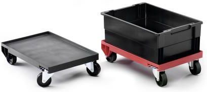 Wózek transportowy na czterech kółkach do przewożenia ciężkich i/lub ustawianych piętrowo skrzynek Wymiary 400 x 160 x 600 mm (szer. x wys. x głęb.)