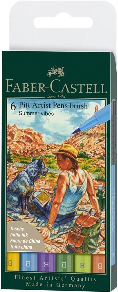 Faber-Castell, pisaki artystyczne Pitt Artist Pen: Summer vibes, 6 szt. (167178 FC) Producent: Faber-Castell EAN: 4005401671787 Zestaw nowoczesnych artystycznych pisaków Pitt Artist Pen Faber-Castell do szkicowania, rysowania i malowania Cechy produktu: Idealne do łączenia z innymi technikami …