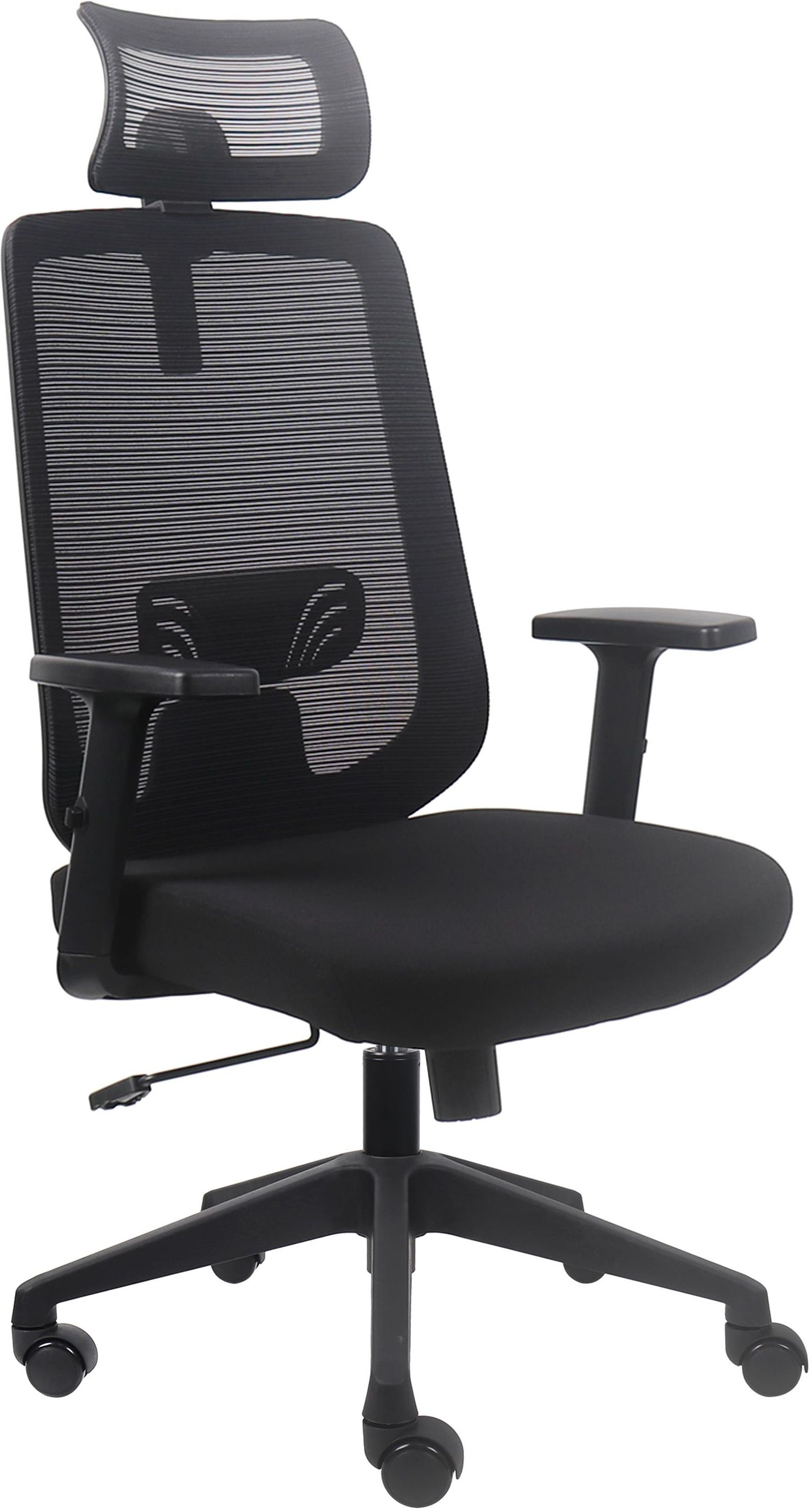 FOTEL ERGONOMICZNY FACTOR oparcie siatkowe, regulacja wysokości oraz kąta nachylenia zagłówka tapicerowanego siatką, podparcie lędźwi regulowane na wysokość, regulowane podłokietniki 1D (góra-dół), mechanizm z funkcją kołysania się Tilt z możliwością blokady w pozycji do pracy, siedzisko tapicerowane pianką i tkaniną w kolorze czarnym, podstawa nylonowa, kółka do powierzchni twardych. fotel zgodny z Rozporządzeniem MRiPS maksymalne obciążenie do 150 kg
