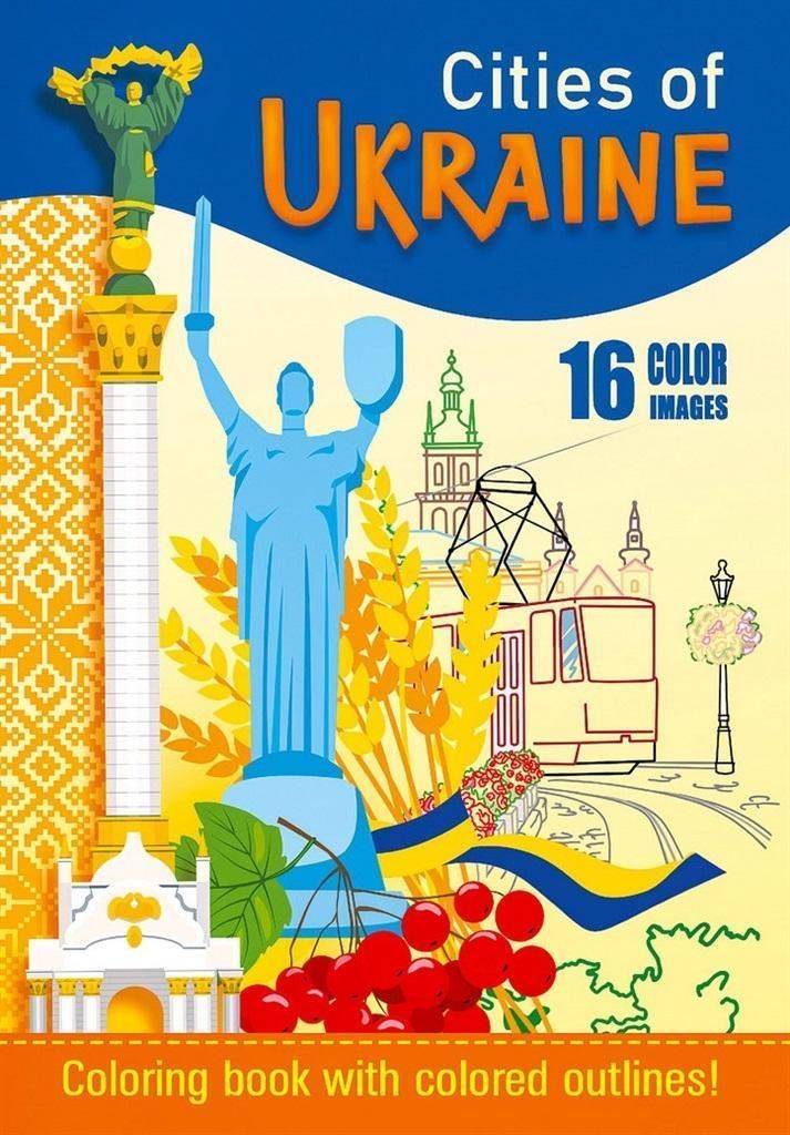 Kolorowanka dla dzieci z motywami ukraińskimi. W środku 16 obrazków, które czekają, aby nabrać kolorów. Wyprodukowana na Ukrainie. EAN: 4823089230979