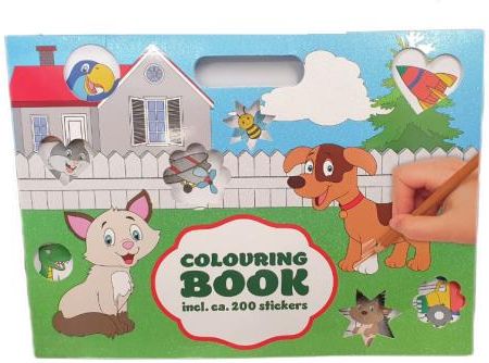 Kolorowanka dla dzieci + 200 naklejek Piesek Kotek Dzięki tej zabawnej kolorowance i książeczce do ozdabiania Twoje dzieci będą przez cały dzień kreatywnie się bawić. Z 200 naklejkami Papier z certyfikatem FSC®: papier pozyskiwany w sposób zrównoważony Specyfikacja: Wymiary: 34 x 24,5 cm