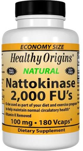 Healthy Origins Nattokinase to suplement diety w formie kapsułek. Nattokinaza to enzym fibrynolityczny pozyskiwany z popularnej japońskiej żywności natto. Natto to żywność podobna do sera, która jest wytwarzana przez dodanie bakterii Bacillus natto do gotowanej soi niemodyfikowanej genetycznie. …