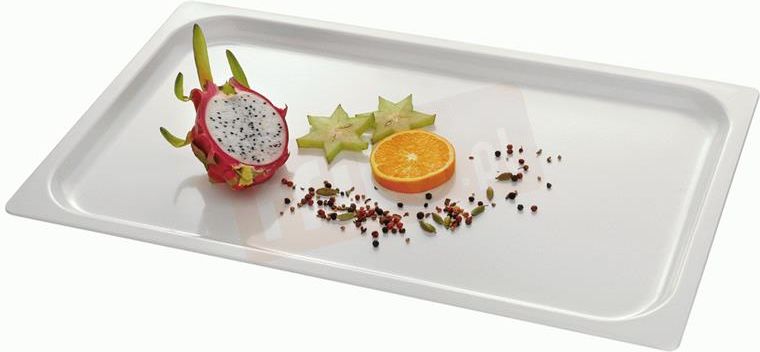 Taca do prezentacji dań i żywności 530x325mm GN 1/1 biała - Hendi 561607Wybierz funkcjonalną tacę GN 1/1 w kolorze białym, idealną do prezentacji wyrobów garmażeryjnych. Dzięki jej estetycznemu wyglądowi, Twoje dania będą wyglądać apetycznie i zachęcająco.Korzyści: Praktyczna i elegancka, doskonała do serwowania różnorodnych potraw. Łatwa w czyszczeniu - można myć w zmywarce. Cechy produktu: Materiał: melamina Odporność na temperatury od -20deg;C do 70deg;C Wymiary: 530x325mm Wysokość: 20mm Nie nadaje się do użycia w kuchenkach mikrofalowych Taca Hendi 561607 to doskonały wybór dla gastronomii, cateringów oraz domowych kuchni. Ułatwi serwowanie i prezentację potraw, zapewniając komfort i estetykę w każdym serwowaniu.