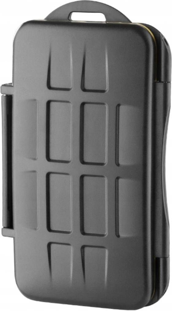 Wodoodporny pokrowiec na karty Compact Flash i SD. Wykonany jest z tworzywa poliwęglanowego o wysokiej odporności mechanicznej. Etui zabezpiecza karty także przed wodą i kurzem. Wypraska z elastycznej gumy z przegródkami na karty dodatkowo zabezpiecza karty przed uszkodzeniami mechanicznymi, a także pewnie przytrzymuje karty, uniemożliwiając wypadanie i mieszanie się. Charakterystyka: Solidne zamknięcie na zatrzask. Brzeg etui uszczelniony silikonową uszczelką zapobiegającą przedostawaniu się do wnętrza wody oraz zanieczyszczeń. Wypraski z elastycznej gumy, z przegrodami na karty Uchwyt umożliwiający podpięcie do plecaka lub pasa. Specyfikacja: Pojemność: 3x CF, 6x SD Wymiary: 145 x 83 x 20 mm Waga: 137 g