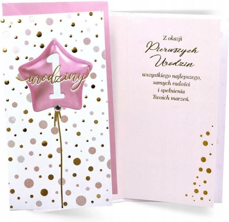 Kukartka Karnet Urodziny Roczek Balon Różowy Brzesko