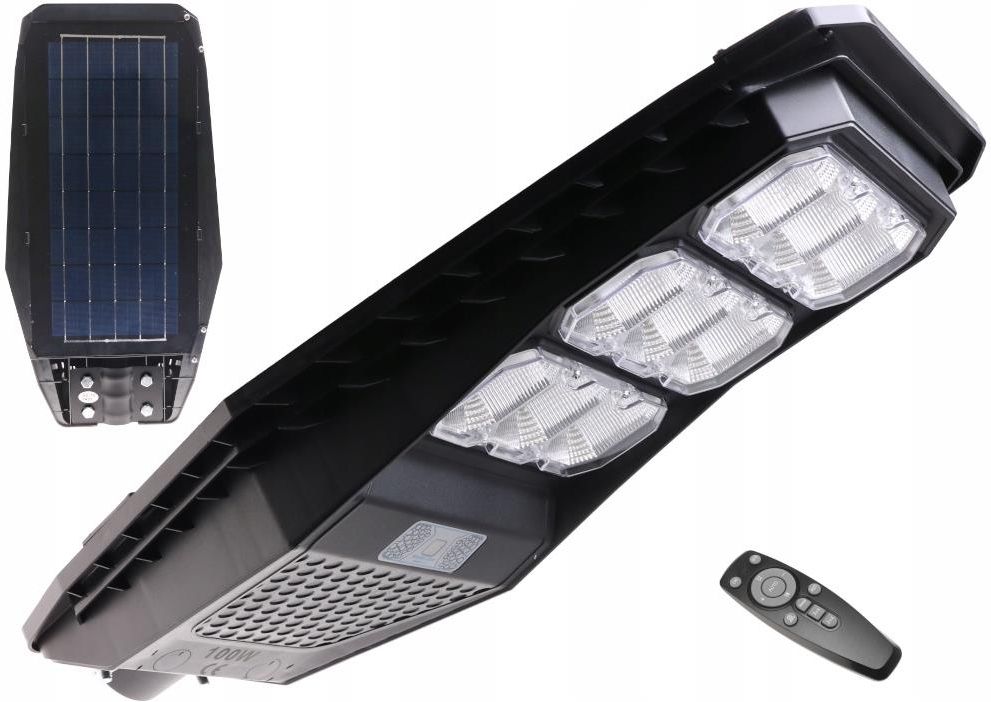 Lampa uliczna z czujnikiem zmierzchu i ruchu Ekologiczny i energooszczędny sposób oświetlenia Cechy produktu: Lampa zasilana energią słoneczną - jest ekologiczna i energooszczędna, zużywa 10 razy mniej energii niż tradycyjne oświetlenie Najnowszej generacji panel solarny monokrystaliczny - silikonowy zapewnia ładowanie akumulatora nawet w pochmurne dni. Akumulator sprawia, że latarnia może świecić całą noc - w zależności od pogody. Czujnik zmierzchu (w solarze) załączy lampę po zmroku i wyłączy o świcie. Wyposażona w 360 diod SMD Idealnie oświetli parking, plac budowy, ulicę, alejkę parkową. Nadaje się przed garaż, magazyn, w gospodarstwach rolnych i agroturystyce. Obudowa wykonana z tworzywa Wbudowany czujnik światła / zmierzchu Wbudowany czujnik ruchu Lampa jest wodoodporna i odporna na wstrząsy Instalacja nie wymaga okablowania, lampa posiada wbudowany akumulator Różne tryby świecenia W zestawie pilot oraz śruby do montażu Specyfikacja: Kąt wychwytywania ruchu: 120° Moc: 100 W Barwa światła: zimna biała Wymiary lampy: 53 x 17 x 6 cm Średnica montażu: 3,6 - 5 cm 9 paneli świetlnych Czas świecenia przy pełnym naładowaniu: do 12 godzin Każdy panel posiada 40 diod SMD LED Funkcje pilota: ON - Włączenie lampy OFF - Wyłączenie lampy "Pełne słoneczko" - Pełna moc świecenia "Połowa słoneczka" - Połowa mocy świecenia "+" - Zwiększenie mocy świecenia "-" - Zmniejszenie mocy świecenia AUTO - Tryb automatyczny, lampa po zmierzchu świeci z połową mocy, po wykryciu ruchu świeci pełną mocą (możliwość regulacji mocy świecenia przyciskami + oraz -) Always - Lampa po zmroki świeci zawsze z pełną mocą (możliwość regulacji mocy świecenia przyciskami + oraz -) 2+x - Lampa po zmierzchu świeci z mocą 70% (możliwość regulacji mocy), następne po 2 godzinach włącza się tryb AUTO 3+x - Lampa po zmierzchu świeci z mocą 70% (możliwość regulacji mocy), następne po 3 godzinach włącza się tryb AUTO