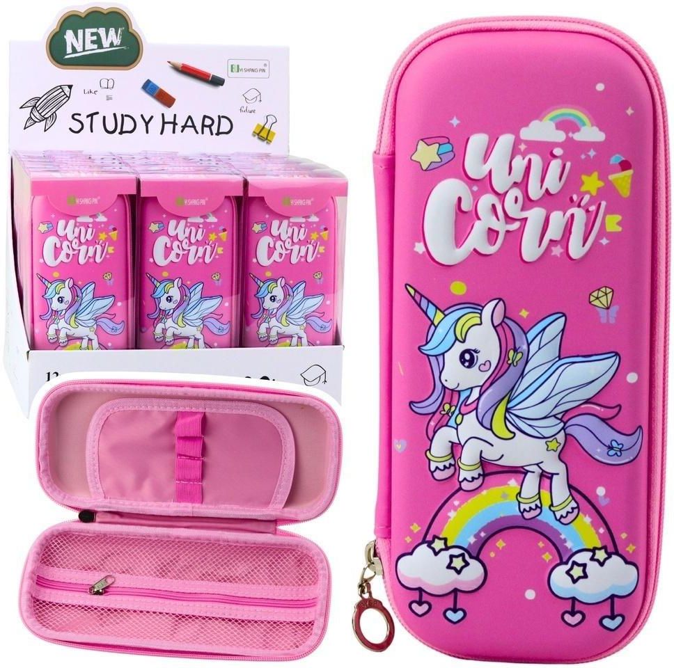 PIÓRNIK SZKOLNY USZTYWNIANY JEDNOROŻEC RÓŻOWY Kolorowy piórnik szkolny z motywem bajkowego jednorożca to idealna propozycja dla dzieci, które cenią sobie zarówno funkcjonalność, jak i oryginalny wygląd przyborów szkolnych. Usztywniana konstrukcja skutecznie chroni zawartość przed zgnieceniem i …