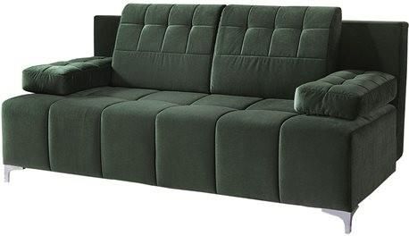Sofa Sinus Sofa Sinus to propozycja dla Klienta ceniącego komfort i wyszukany design. Elementem ozdobnym, który nadaje meblu nowoczesną formę, jest charakterystyczna kratka uzyskana dzięki delikatnym pikom. Pikowany wzór pojawia się na siedzisku, poduszkach oparciowych i poduszkach bocznych. Mebel wykonany z przyjemnej tkaniny welurowej, która nadaje sofie elegancji i wyszukanego smaku. Dodatkowym elementem ozdobnym są chromowane nóżki narożne o nowoczesnym kształcie. W meblu uzyskano wysoki komfort użytkowania dzięki zastosowaniu podwójnego sprężynowania w elementach siedziskowych. Poduszki oparciowe wykonane z piankowych formatek, które lekko poddają się przy siadaniu. Sofa ma biały estetyczny pojemnik na pościel, funkcja spania typu EASY LIFT ze wspomaganiem otwierania. Dodatkową zaleta mebla jest bardzo duża powierzchnia spania 202 x 160. Tkanina na zdjęciu: Kronos 14 Bottle Green Cechy i funkcje Sprężyna falista Sprężyna typu bonell HR - pianka wysokoelastyczna Pojemnik na pościel Wspomaganie rozkładania Wymiary Szerokość: 222 cm Głębokość: 103 cm Wysokość: 97 cm Powierzchnia spania: 202×160 cm Tkanina na zdjęciu: Kronos 14 Bottle Green Wideo Zachęcamy do obejrzenia filmu pokazującego funkcje, które posiada sofa Uzo Na filmie zaprezentowano działanie funkcji spania DL. Dane dodatkowe: Producent: Libro Gwarancja: 2 lata Montaż: Elementy do złożenia* *montaż polega na złączeniu ze sobą elementów. Osoba bez doświadczenia złoży mebel bez problemu.